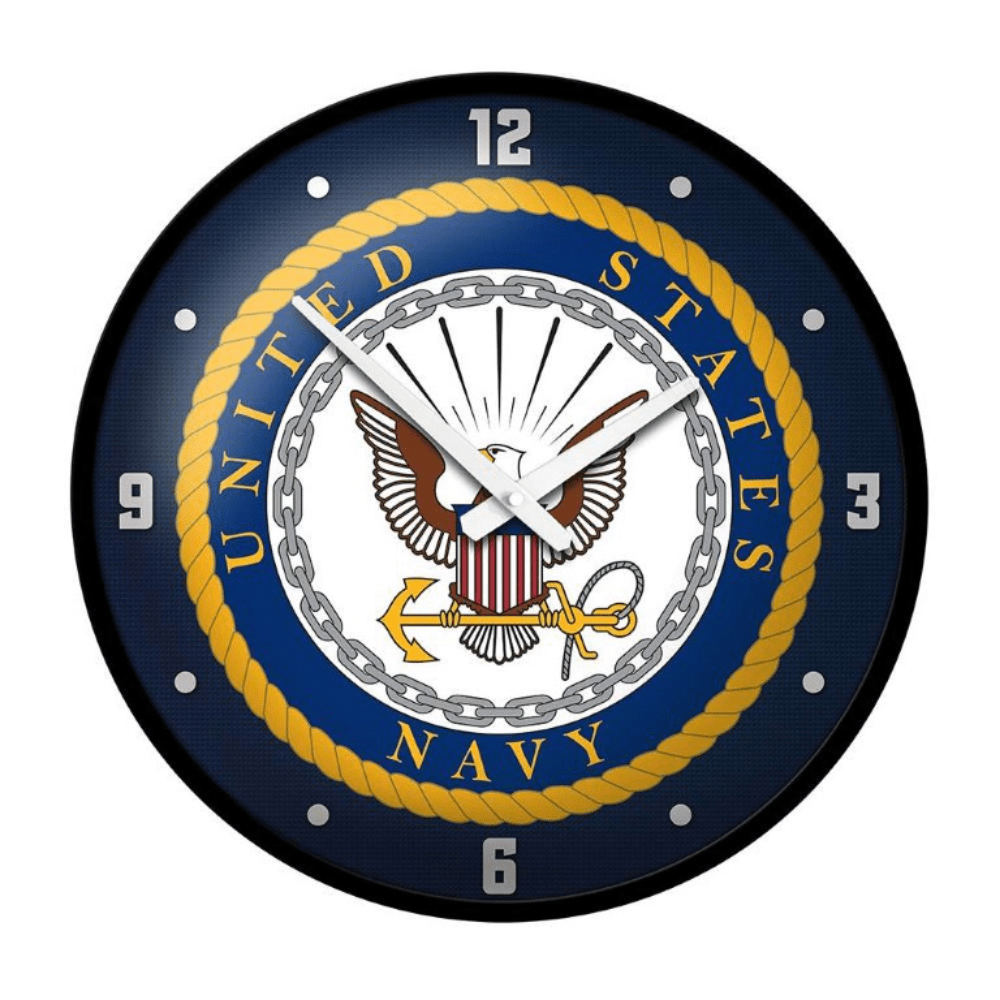 Our simple and modern United States Navy wall clock will add color and appeal to any room you choose to hang it in. It features an injection molded frame with a high-resolution, digitally printed, face that prominently displays the Navy logo. It also features a quartz clock movement to add an extra element of functionality. This is the perfect clock for any room of the home, office, or dorm room to show your pride for the Navy. This is an officially licensed product of the US Navy and made in the USA.FEATURES