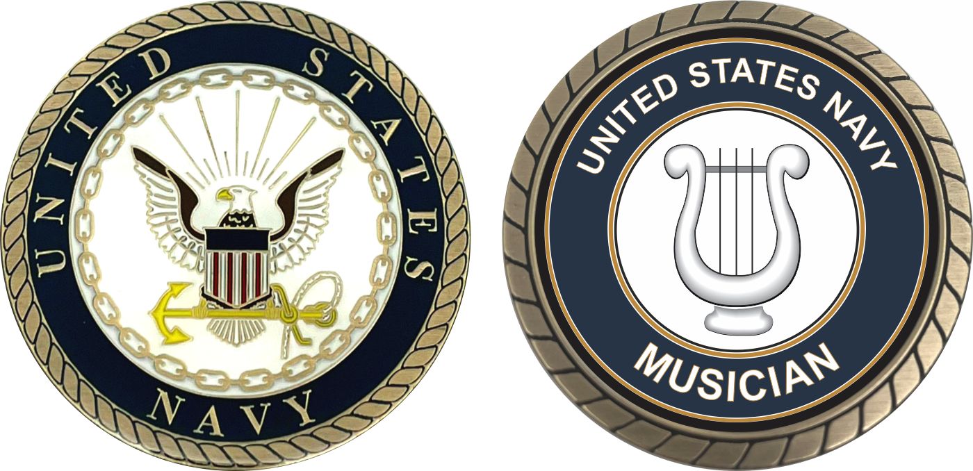 This 1 3/4” U.S. Navy Musician MU Challenge Coin is proudly offered by MilitaryBest. This Officially Licensed Navy coin has beautiful enamel finish on one side and an organized crisp clean Musician MU design on the opposite side.