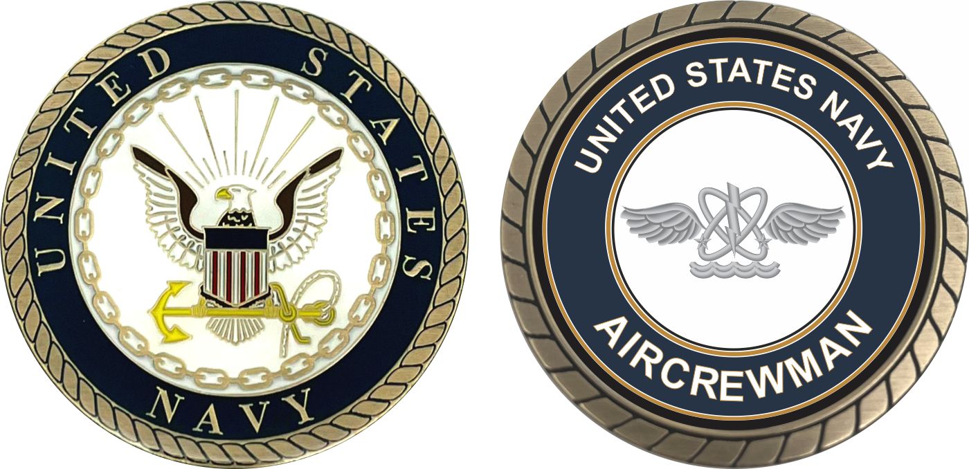 This 1 3/4” U.S. Navy Naval Aircrewman AW Challenge Coin is proudly offered by MilitaryBest. This Officially Licensed Navy coin has beautiful enamel finish on one side and an organized crisp clean Naval Aircrewman AW design on the opposite side.