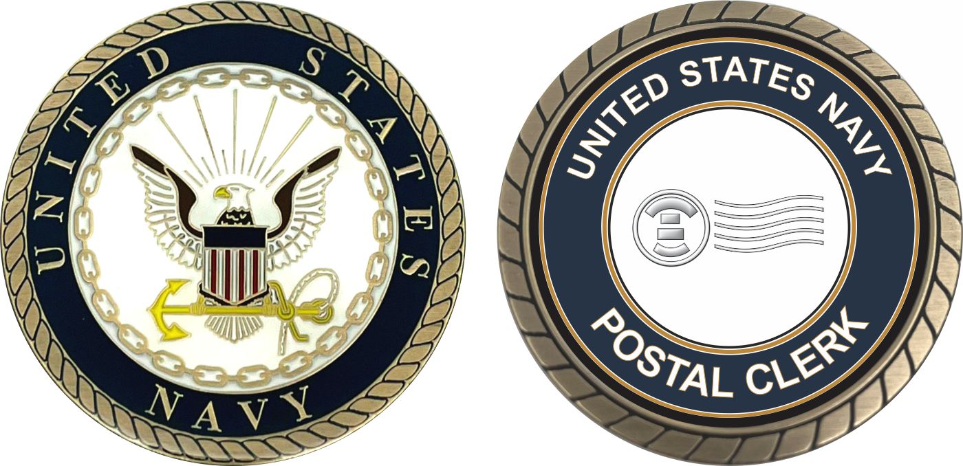 This 1 3/4” U.S. Navy Postal Clerk PC Challenge Coin is proudly offered by MilitaryBest. This Officially Licensed Navy coin has beautiful enamel finish on one side and an organized crisp clean Postal Clerk PC design on the opposite side.