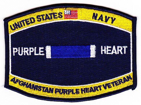 This U.S. Navy Purple Heart Afghanistan patch measures 4.5" wide by 3.5" tall and can be ironed or stitched on. Each of our U.S. Navy patch's quality is guaranteed. Order below by selecting the Purchase Now button.You can also order this item attached to the front of one of our high or low profile poly caps by selecting from the drop down menu below. Each U.S. Navy Purple Heart Afghanistan cap can also be personalized with your name or other text on the back of the cap by selecting "yes" below and filling out the text section. An American flag can also be added to the side of your cap.