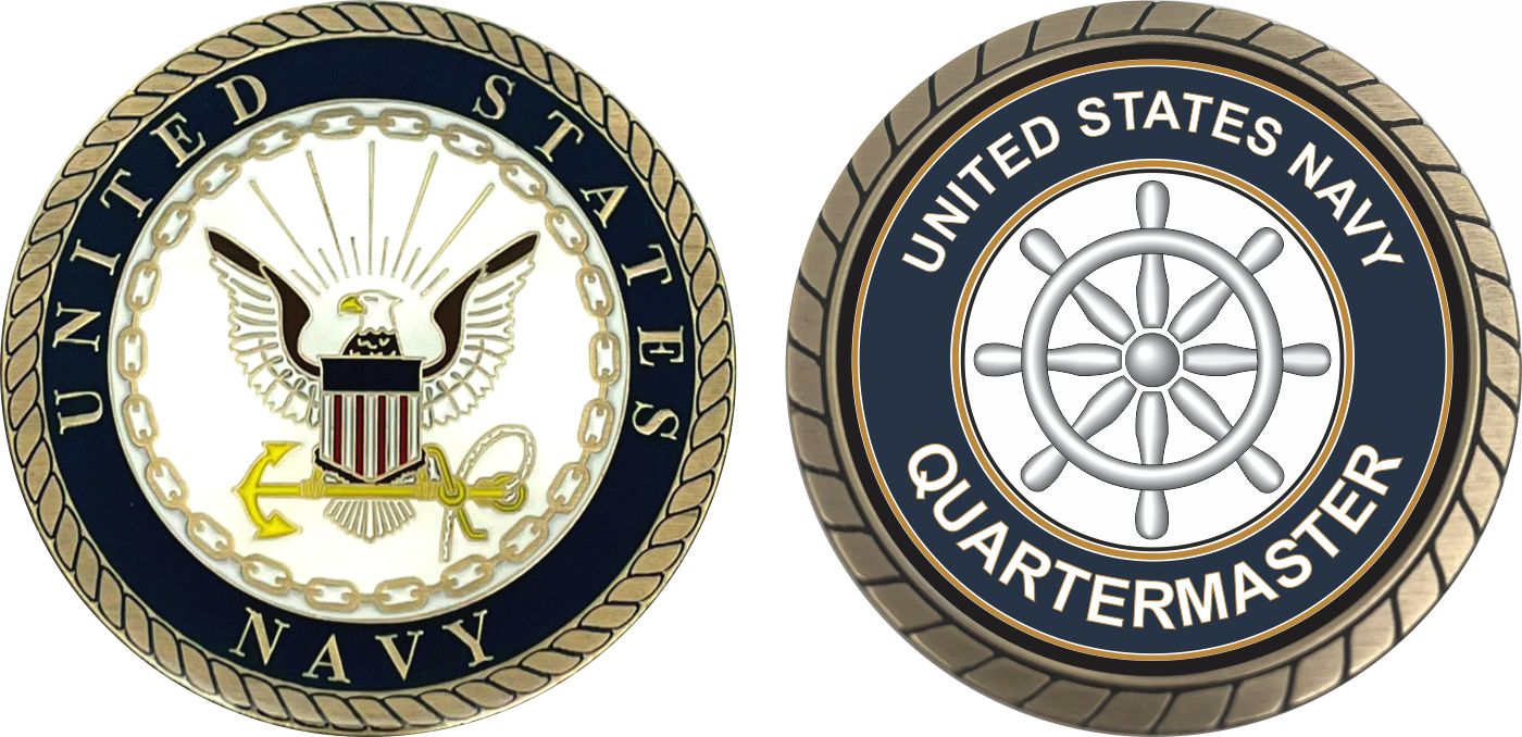 This 1 3/4” U.S. Navy Quartermaster QM Challenge Coin is proudly offered by MilitaryBest. This Officially Licensed Navy coin has beautiful enamel finish on one side and an organized crisp clean Quartermaster QM design on the opposite side.