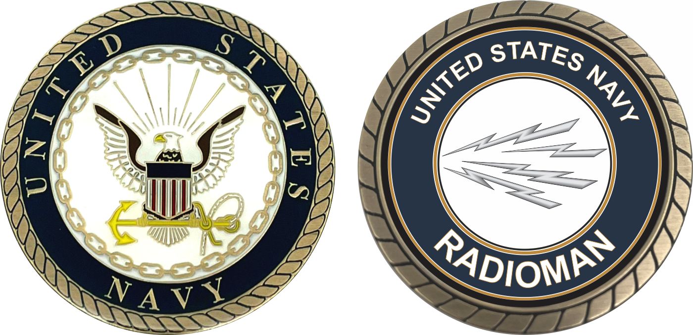 This 1 3/4” U.S. Navy Radioman RM Challenge Coin is proudly offered by MilitaryBest. This Officially Licensed Navy coin has beautiful enamel finish on one side and an organized crisp clean Radioman RM design on the opposite side.