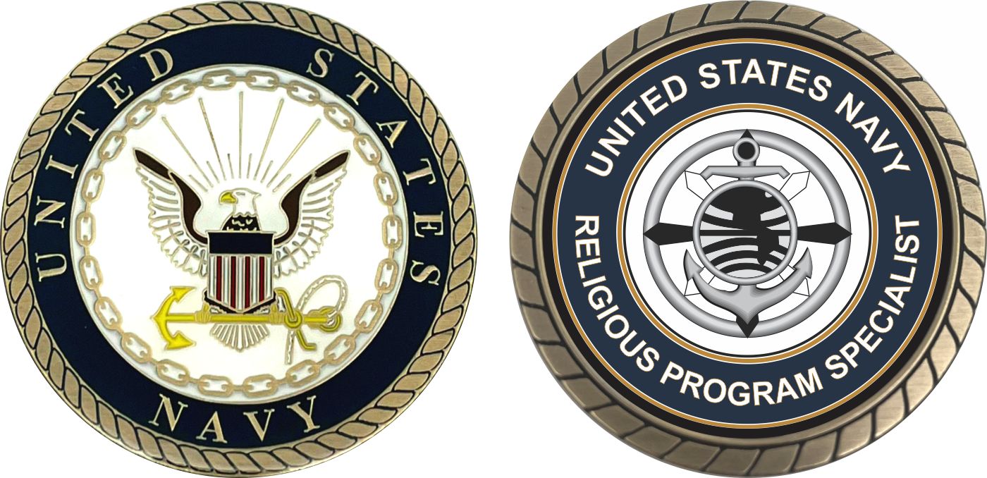 This 1 3/4” U.S. Navy Religious Program Specialist RP Challenge Coin is proudly offered by MilitaryBest. This Officially Licensed Navy coin has beautiful enamel finish on one side and an organized crisp clean Religious Program Specialist RP design on the opposite side.