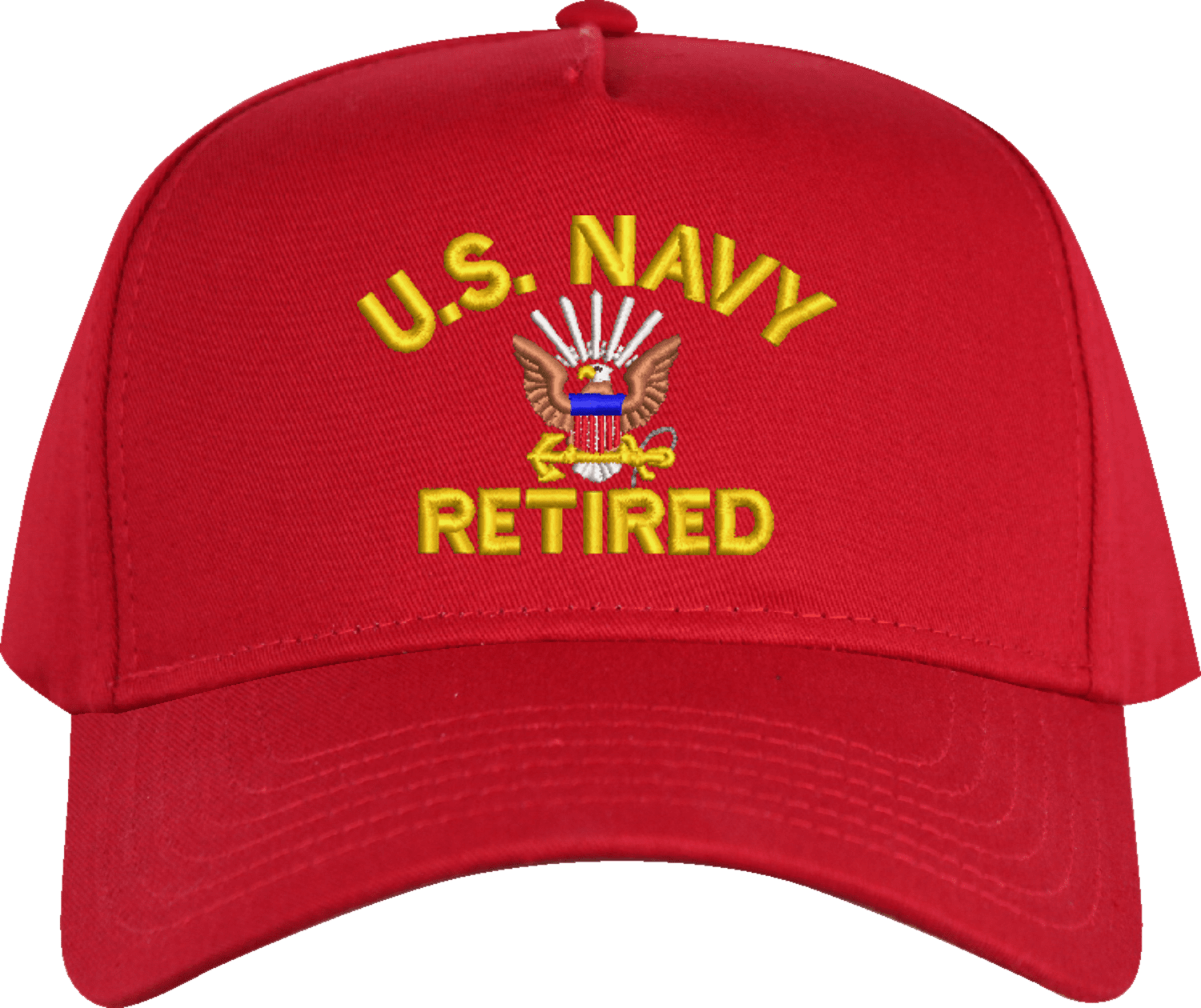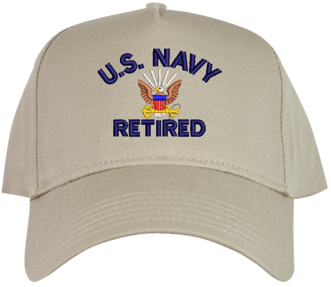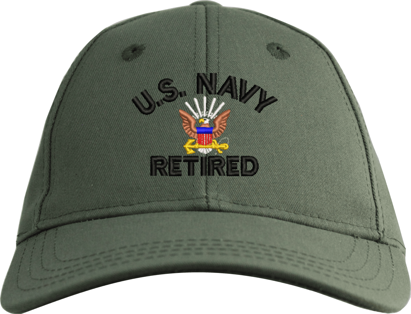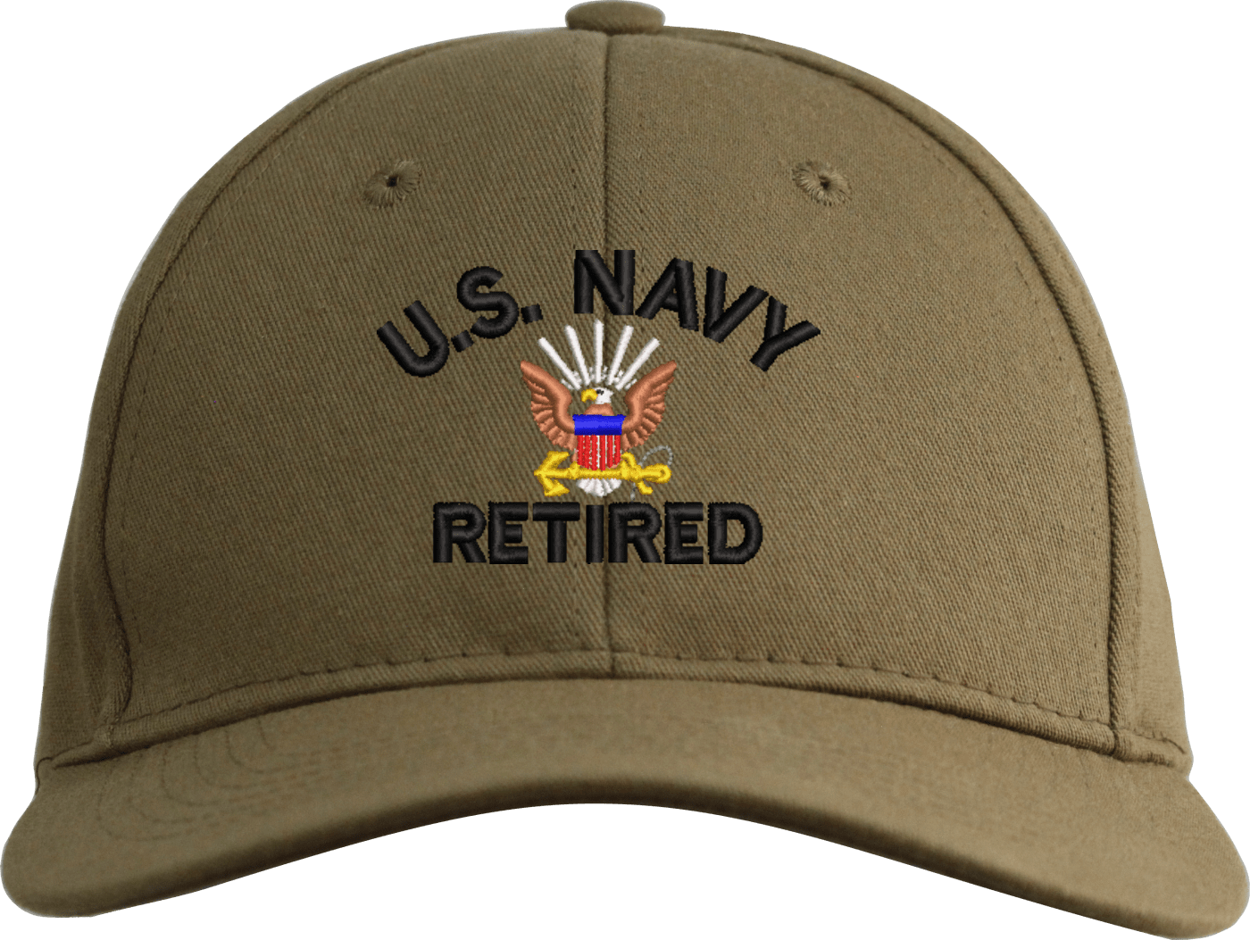 MilitaryBest is proud to offer this quality U.S. Navy Retired Embroidered Cap. This cap is available in either 5 panel high profile or 6 panel low profile styling. This U.S. Navy Retired Embroidered Cap will make a great addition to your collection or a great gift. You are sure to be the envy of all your veteran buddies. This U.S. Navy Retired Embroidered Cap is embroidered at our facilities in Scottsboro, AL by skilled craftsmen with a passion for patriotism. Your satisfaction is guaranteed!We will be glad to include scrambled eggs. For caps ordered with custom embroidered personalized text please allow an additional 3 to 5 days production time. All custom back text will be embroidered in ALL CAPS. Caps with back text or eggs are non-returnable unless there is a material defect in the cap. Unless specified otherwise text will be embroidered with traditional yellow/gold thread.