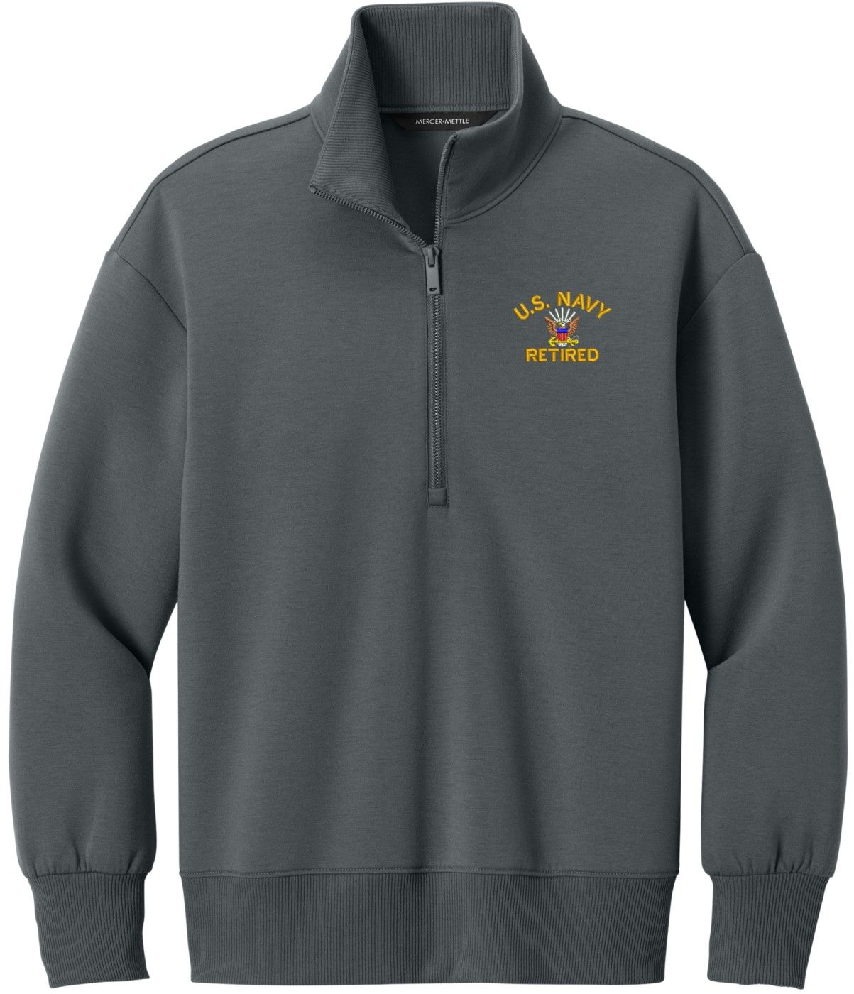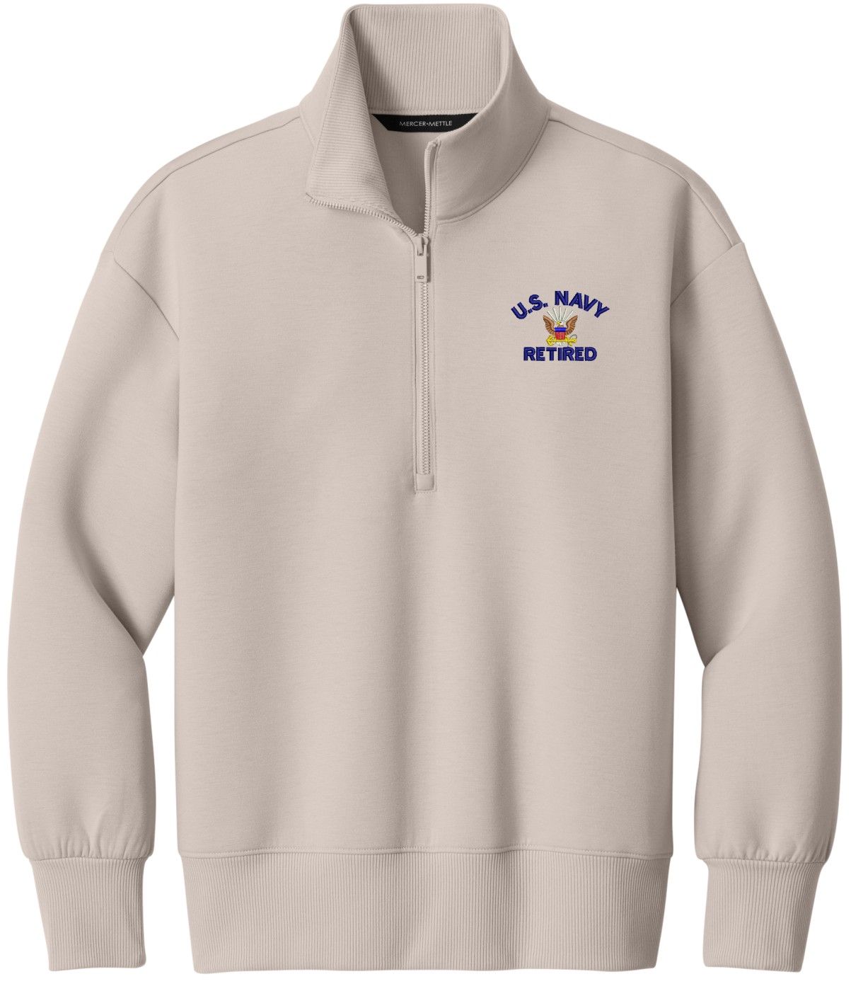 MilitaryBest is proud to offer this U.S. Navy Retired Women's Soft Spacer Quarter-Zip. This quarter-zip is embroidered by our MilitaryBest team in Northeast Alabama. These quarter-zips are made using spacer yarn to provide light insulation with a soft structure, they also fight odor and provide light UV ray protection.Care Instructions: Turn Garment Inside Out. Machine Wash Cold With Like Colors. Only Non-Chlorine Bleach, When Needed. Tumble Dry Low, Remove Promptly. Cool Iron, If Necessary. Do Not Use Fabric Softeners Or Dryer Sheets.