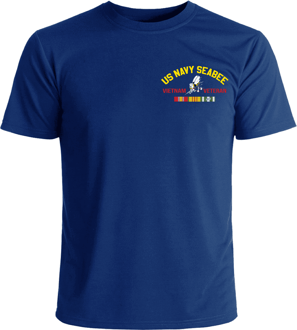 Please enjoy this US Navy officially licensed U.S. Navy Seabees Vietnam Veteran Service Ribbons Left Chest T-Shirt. It is a 100% cotton shirt and is available in S, M, L, XL, 2X, 3X and 4X sizes.A percentage of the sale of each MilitaryBest item is forwarded to the licensing departments of each respective branch of service in support of the MWR (Morale, Welfare, & Recreation) program. These payments are made by either ALL4U LLC or the wholesaler from where the item originated. Our team thanks you for your service and your support of these programs.