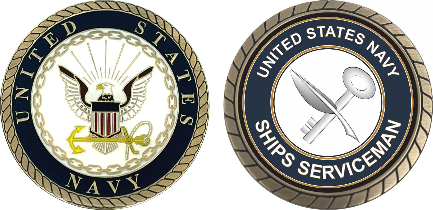 This 1 3/4” U.S. Navy Ship's Serviceman SH Challenge Coin is proudly offered by MilitaryBest. This Officially Licensed Navy coin has beautiful enamel finish on one side and an organized crisp clean Ship's Serviceman SH design on the opposite side.