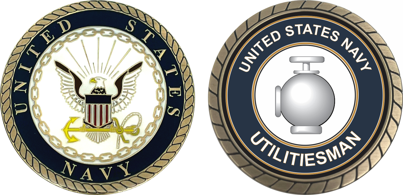 This 1 3/4” U.S. Navy Utilitiesman UT Challenge Coin is proudly offered by MilitaryBest. This Officially Licensed Navy coin has beautiful enamel finish on one side and an organized crisp clean Utilitiesman UT design on the opposite side.
