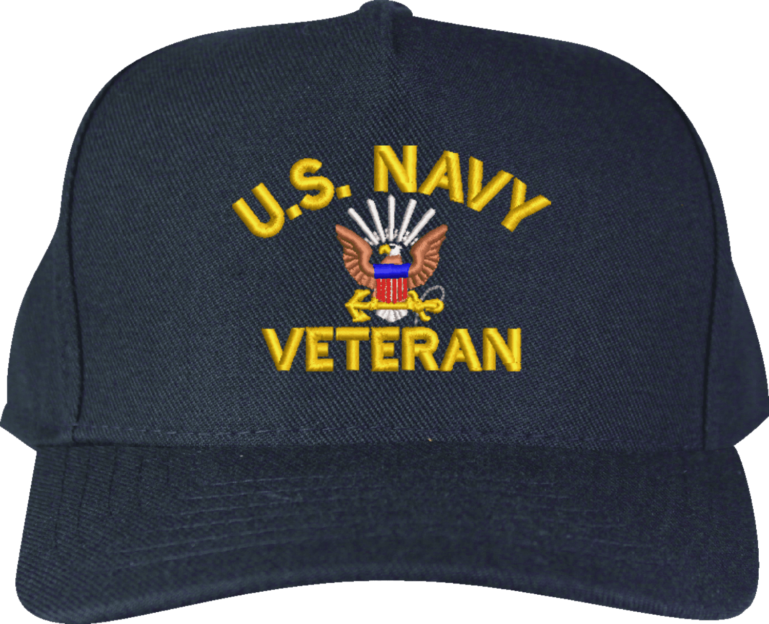 MilitaryBest is proud to offer this quality U.S. Navy Veteran Embroidered Cap. This cap is available in either 5 panel high profile or 6 panel low profile styling. This U.S. Navy Veteran Embroidered Cap will make a great addition to your collection or a great gift. You are sure to be the envy of all your veteran buddies. This U.S. Navy Veteran Embroidered Cap is embroidered at our facilities in Scottsboro, AL by skilled craftsmen with a passion for patriotism. Your satisfaction is guaranteed!We will be glad to include scrambled eggs. For caps ordered with custom embroidered personalized text please allow an additional 3 to 5 days production time. All custom back text will be embroidered in ALL CAPS. Caps with back text or eggs are non-returnable unless there is a material defect in the cap. Unless specified otherwise text will be embroidered with traditional yellow/gold thread.
