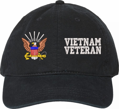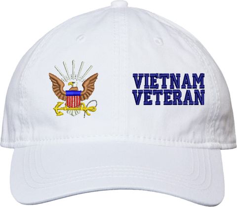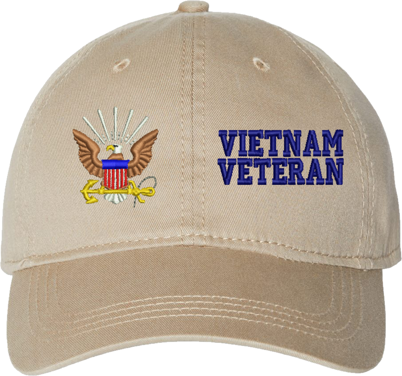 Show your Navy pride with this U.S. Navy Vietnam Veteran Unstructured Dad Cap from MilitaryBest. Crafted from 100% washed chino twill cotton, this six-panel, low-profile cap offers a relaxed and comfortable fit. Featuring high-quality embroidery done in our Scottsboro, Alabama facility, this cap is designed with a pre-curved visor and an adjustable tri-glide buckle closure for a perfect fit. Whether for everyday wear or as a meaningful gift, this cap is a great way to honor your own or a loved one's service.For caps ordered with custom embroidered personalized text please allow an additional 3 to 5 days production time. All custom back text will be embroidered in ALL CAPITAL LETTERS. Caps with back text or eggs are non-returnable unless there is a material defect in the cap.