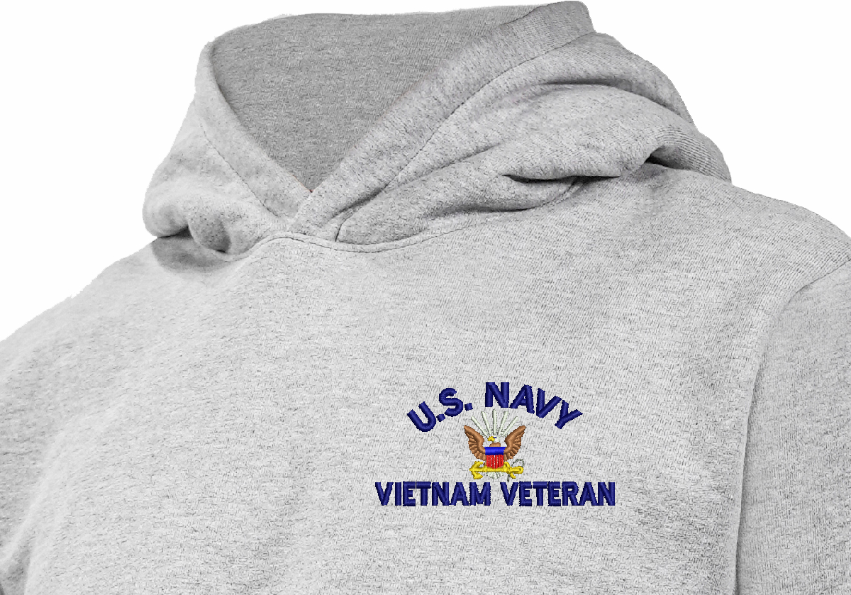 Striving to provide you with the highest quality apparel made in the United States, MilitaryBest is proud to offer this U.S. Navy Vietnam Veteran Heavy Weight Fleece Hoodie. Manufactured by WSI Sportswear in Minnesota and Embroidered by us here at MilitaryBest in Alabama; this fleece hoodie is 100% Made in the USA! We aim to provide you with soft, comfortable, dry-fit, American-made clothing that allows you to be your best.*For washing we recommend machine wash cold with like colors, and line dry.PRODUCT FEATURES