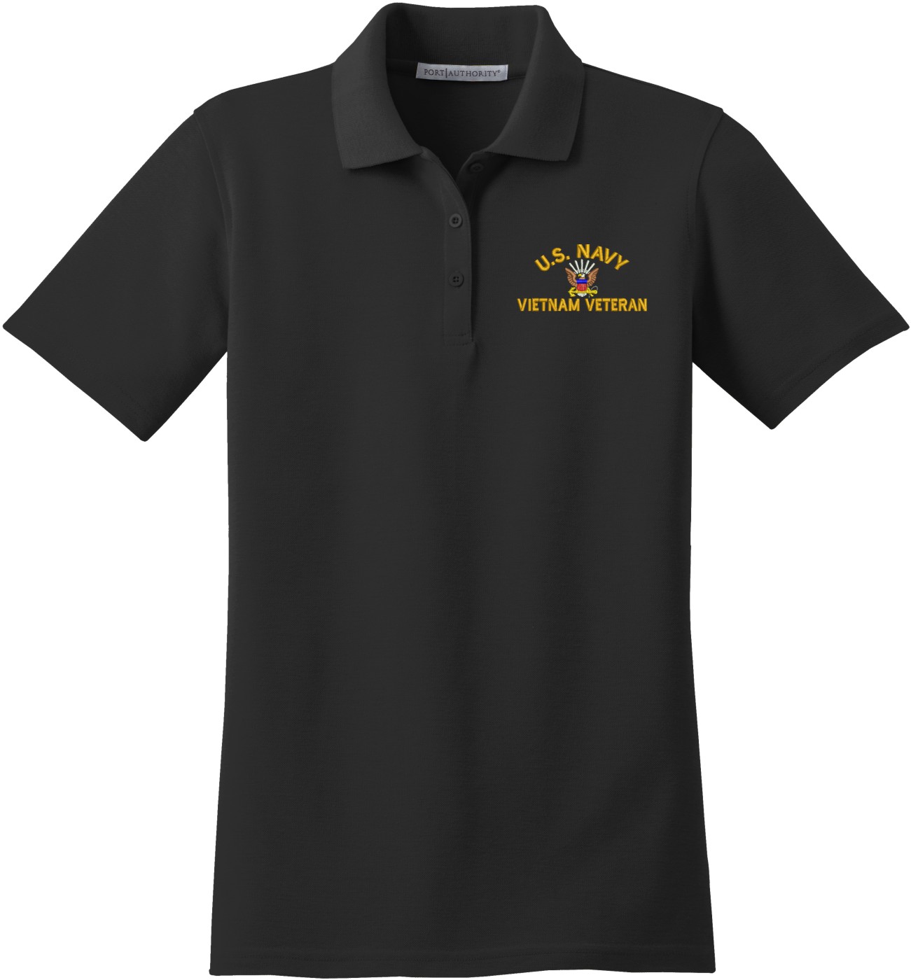 MilitaryBest is proud to offer this U.S. Navy Vietnam Veteran Women's Stain-Release Polo. This polo is embroidered by our MilitaryBest team in Northeast Alabama. These polos are made with a stain-release finish for long-lasting wear, odor-fighting properties, and superior wrinkle and shrink resistance.Care Instructions: Machine Wash Cold With Like Colors. Do Not Use Fabric Softener. Do Not Bleach. Tumble Dry Low. Warm Iron If Necessary.