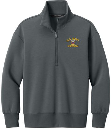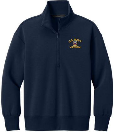 MilitaryBest is proud to offer this U.S. Navy Vietnam Women's Soft Spacer Quarter-Zip. This quarter-zip is embroidered by our MilitaryBest team in Northeast Alabama. These quarter-zips are made using spacer yarn to provide light insulation with a soft structure, they also fight odor and provide light UV ray protection.Care Instructions: Turn Garment Inside Out. Machine Wash Cold With Like Colors. Only Non-Chlorine Bleach, When Needed. Tumble Dry Low, Remove Promptly. Cool Iron, If Necessary. Do Not Use Fabric Softeners Or Dryer Sheets.