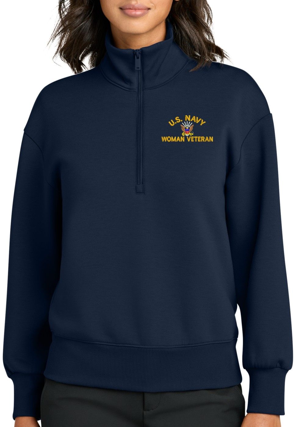MilitaryBest is proud to offer this U.S. Navy Woman Veteran Women's Soft Spacer Quarter-Zip. This quarter-zip is embroidered by our MilitaryBest team in Northeast Alabama. These quarter-zips are made using spacer yarn to provide light insulation with a soft structure, they also fight odor and provide light UV ray protection.Care Instructions: Turn Garment Inside Out. Machine Wash Cold With Like Colors. Only Non-Chlorine Bleach, When Needed. Tumble Dry Low, Remove Promptly. Cool Iron, If Necessary. Do Not Use Fabric Softeners Or Dryer Sheets.