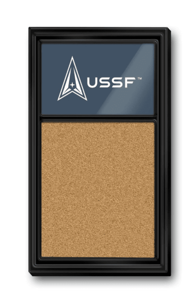 The United States Space Force Cork Note Board is perfect for keeping notes and pinning messages or photos in any fan cave, game room, office or dorm. Our note board wall sign is injection molded with it's high-resolution digitally printed face, high gloss finish, and Corkboard surface, it will provide hours of use while adding a finishing touch to any room. Mounting hardware included. This is an officially licensed product of the Space Force and made in the USA.FEATURES