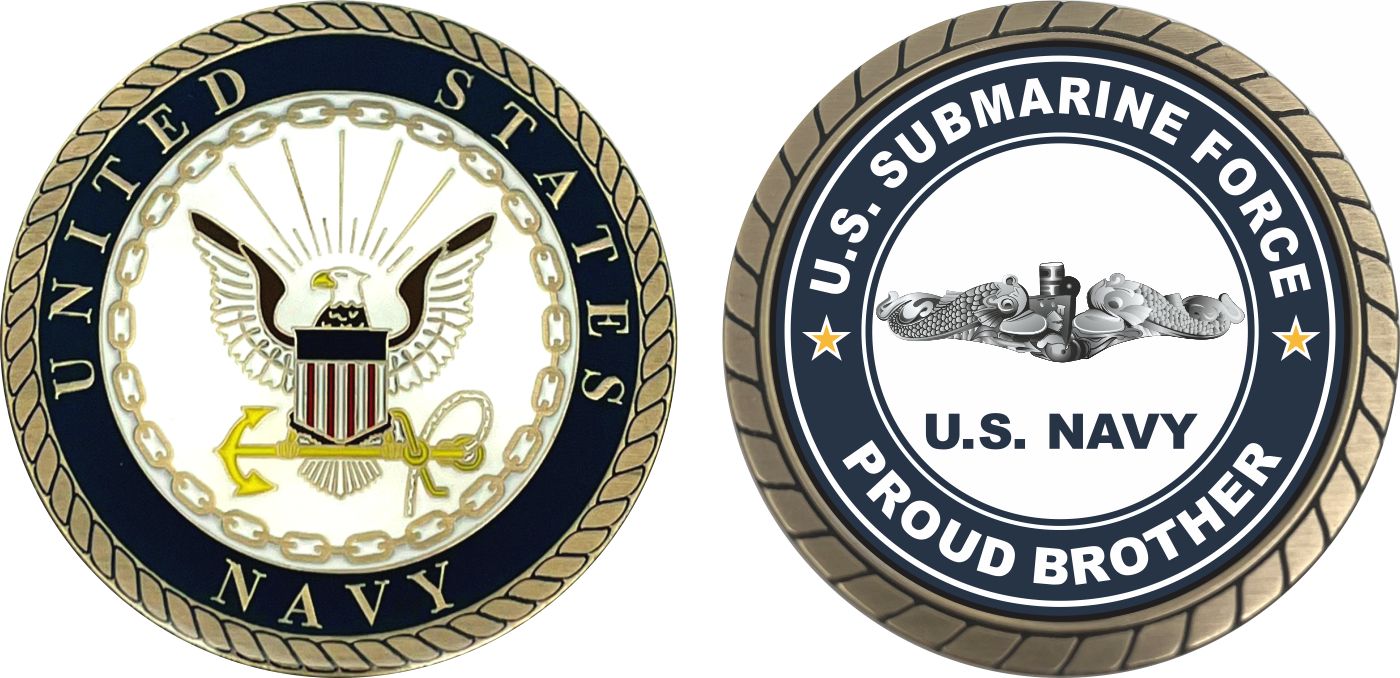 This 1 3/4” US Submarine Force Proud Brother Silver Dolphins Challenge Coin is proudly offered by MilitaryBest. This Officially Licensed Navy coin has beautiful enamel finish on one side and an organized crisp clean US Submarine Force Proud Brother design on the opposite side.