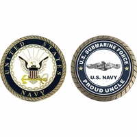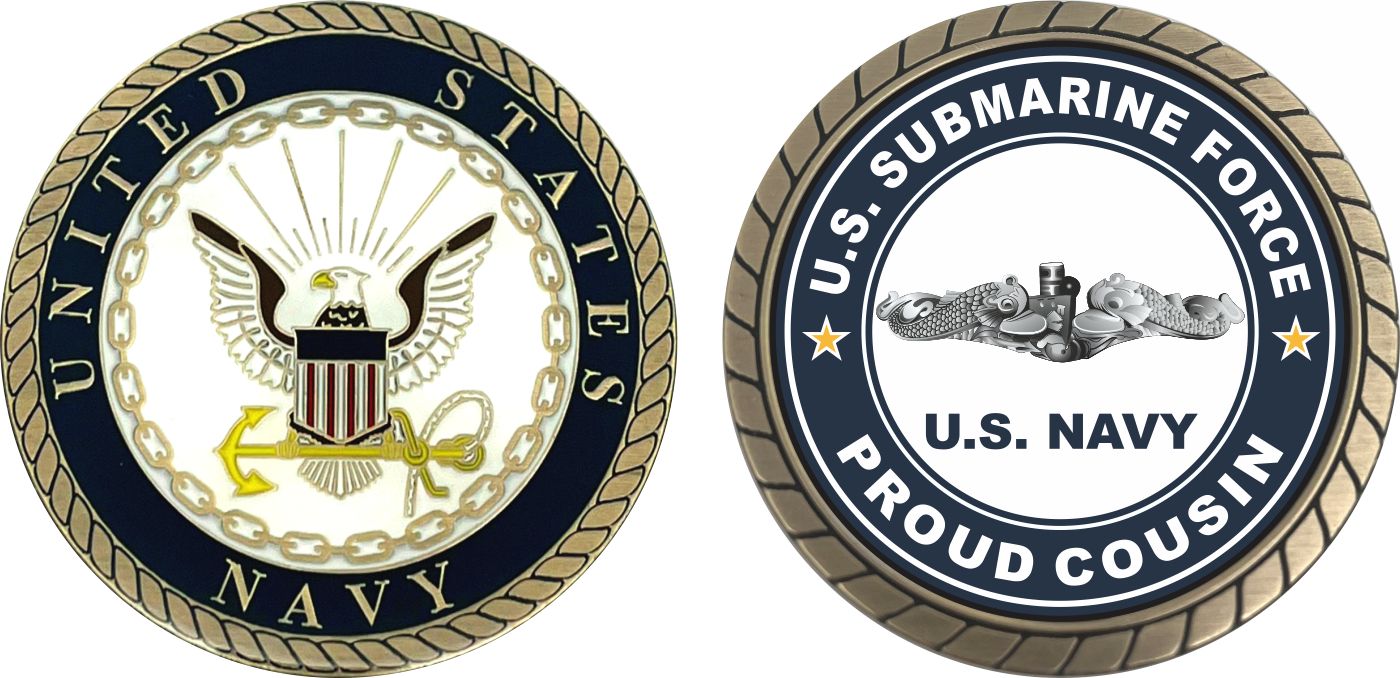 This 1 3/4” US Submarine Force Proud Cousin Silver Dolphins Challenge Coin is proudly offered by MilitaryBest. This Officially Licensed Navy coin has beautiful enamel finish on one side and an organized crisp clean US Submarine Force Proud Cousin design on the opposite side.