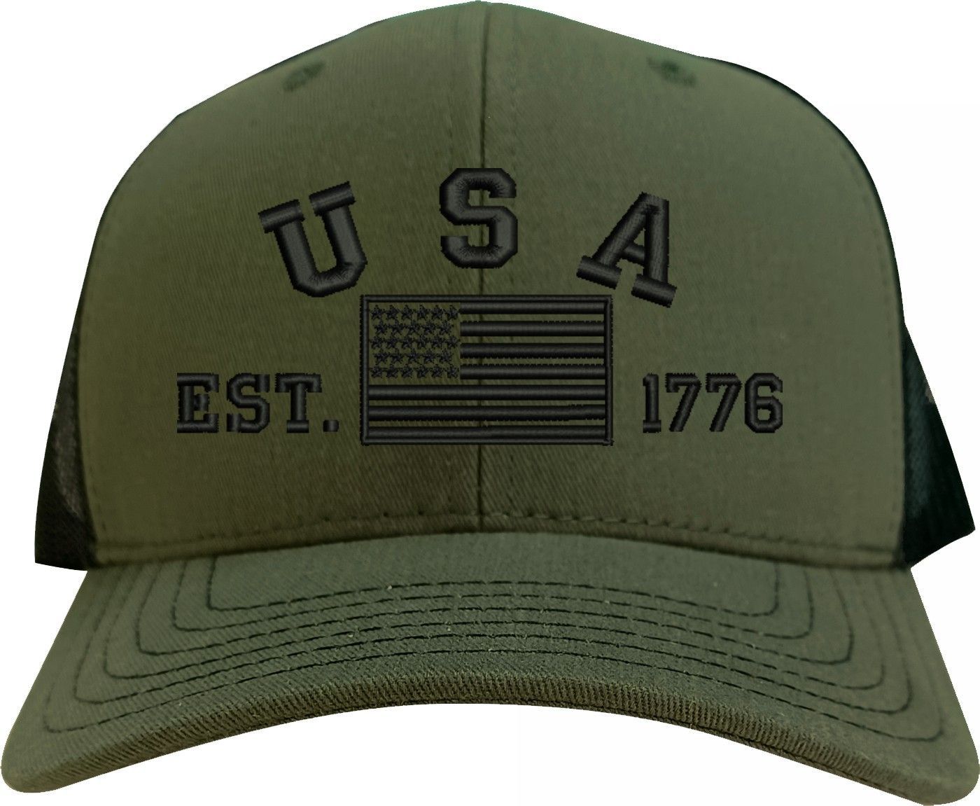 This USA EST 1776 O.D. Green/Black Mesh-Back Cap (Made in the USA) is an overstock item and is only available for the value price while supplies last. Clearance Items are not eligible for Refunds or Returns,A percentage of the sale of each MilitaryBest item is forwarded to the licensing departments of each respective branch of service in support of the MWR (Morale, Welfare, & Recreation) program. These payments are made by either ALL4U LLC or the wholesaler from where the item originated. Our team thanks you for your service and your support of these programs.