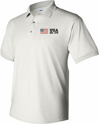 *** The brand of shirt will vary, and may not match the brand pictured above. ***MilitaryBest is proud to offer this quality USA Est 1776 (Split) Embroidered Polo. Each Polo is available in either 100% Ringspun cotton pique or a 50/50 cotton/polyester blend. These quality Military Polos are proudly embroidered at our facilities in Scottsboro, AL. Support the Army MWR program by purchasing only from Licensed Vendors.