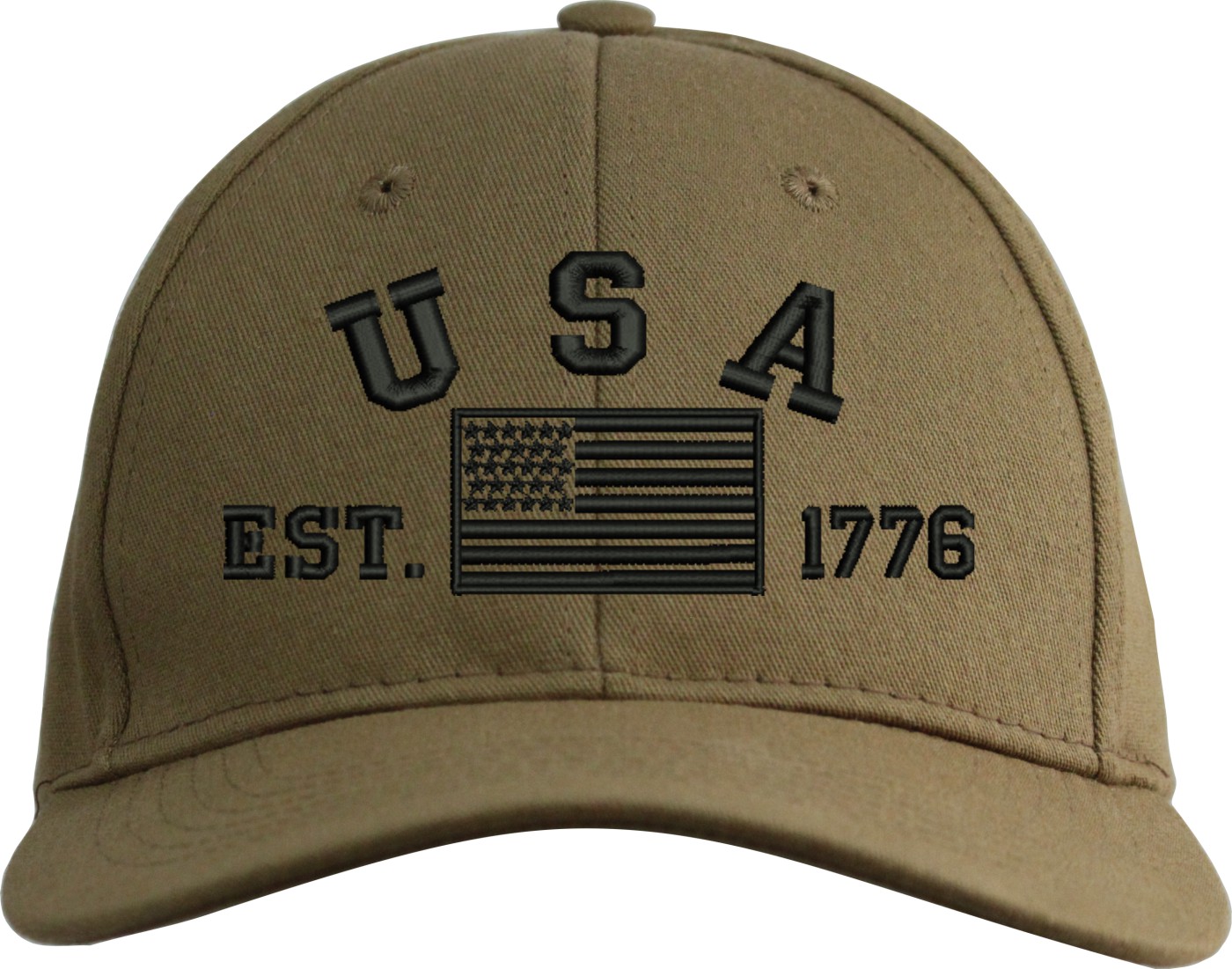 Celebrate 250 years of the United States of America! MilitaryBest is proud to offer this quality USA Est 1776 Subdued Embroidered Cap. This cap is available in either 5 panel high profile or 6 panel low profile styling. This cap will make a great addition to your collection or a great gift. This cap is crafted by our skilled embroidery technicians at our facilities in Scottsboro, AL. Your satisfaction is guaranteed!For caps ordered with custom embroidered personalized text please allow an additional 3 to 5 days production time. All custom text will be embroidered in ALL CAPS. Caps with custom text or eggs are non-returnable unless there is a material defect in the cap.