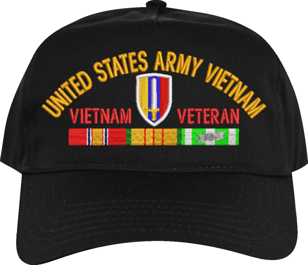 MilitaryBest is proud to offer this USARV Vietnam Veteran Embroidered Cap with Ribbons. This cap is available in a 5 panel high profile or 6 panel low profile styling. All our caps are made from top quality materials. This cap would make a wonderful addition to your collection or a great gift! All custom embroidery is done at our facility in Scottsboro, AL.