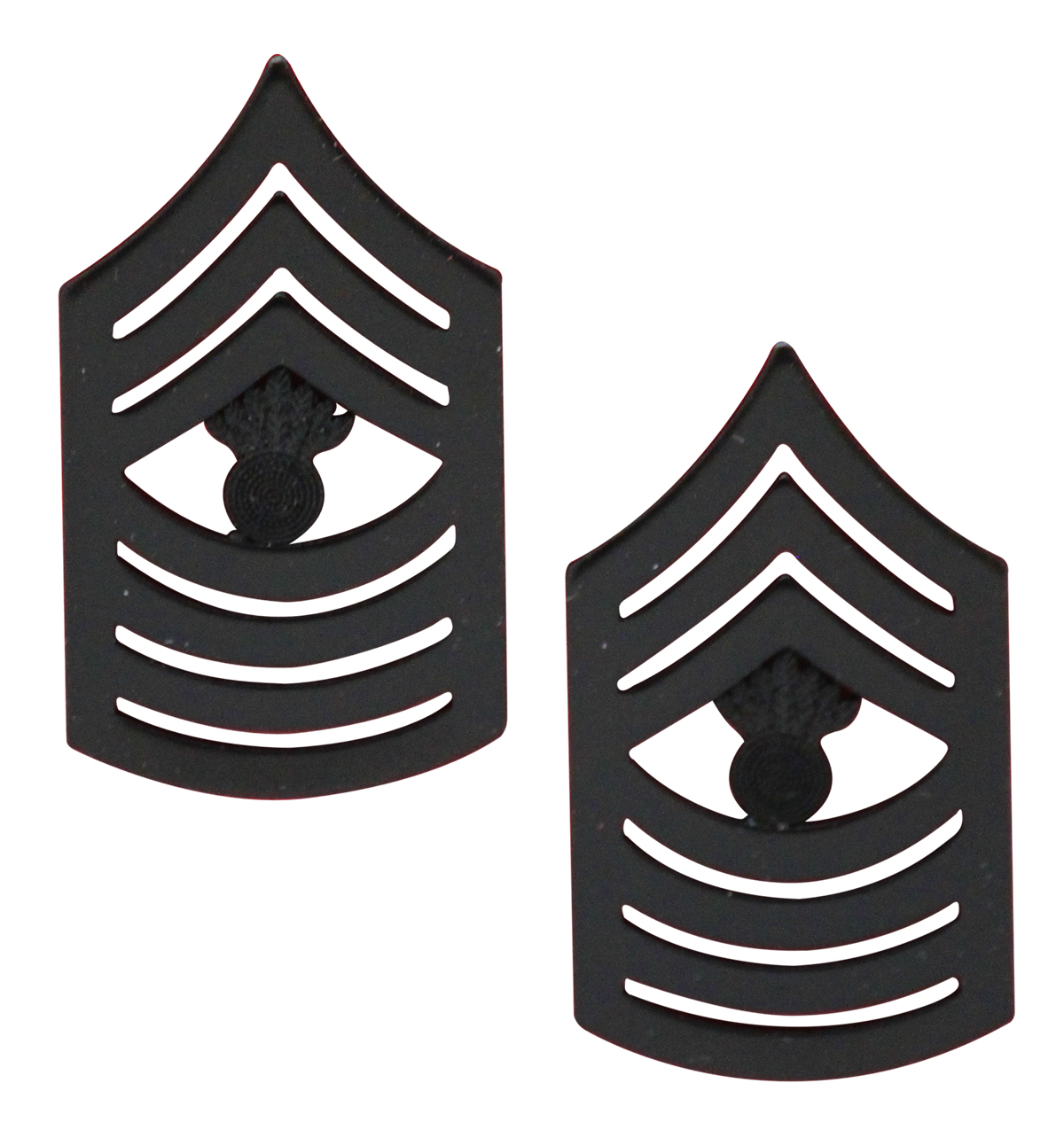 This pair of Black Metal U.S.M.C. MGYSGT Master Gunnery Sergeant rank insignia is produced by the same company that supplies the exchanges and posts around the globe. This Black Metal Insignia is Solid Brass and It's quality is guaranteed.