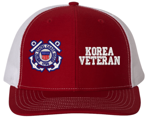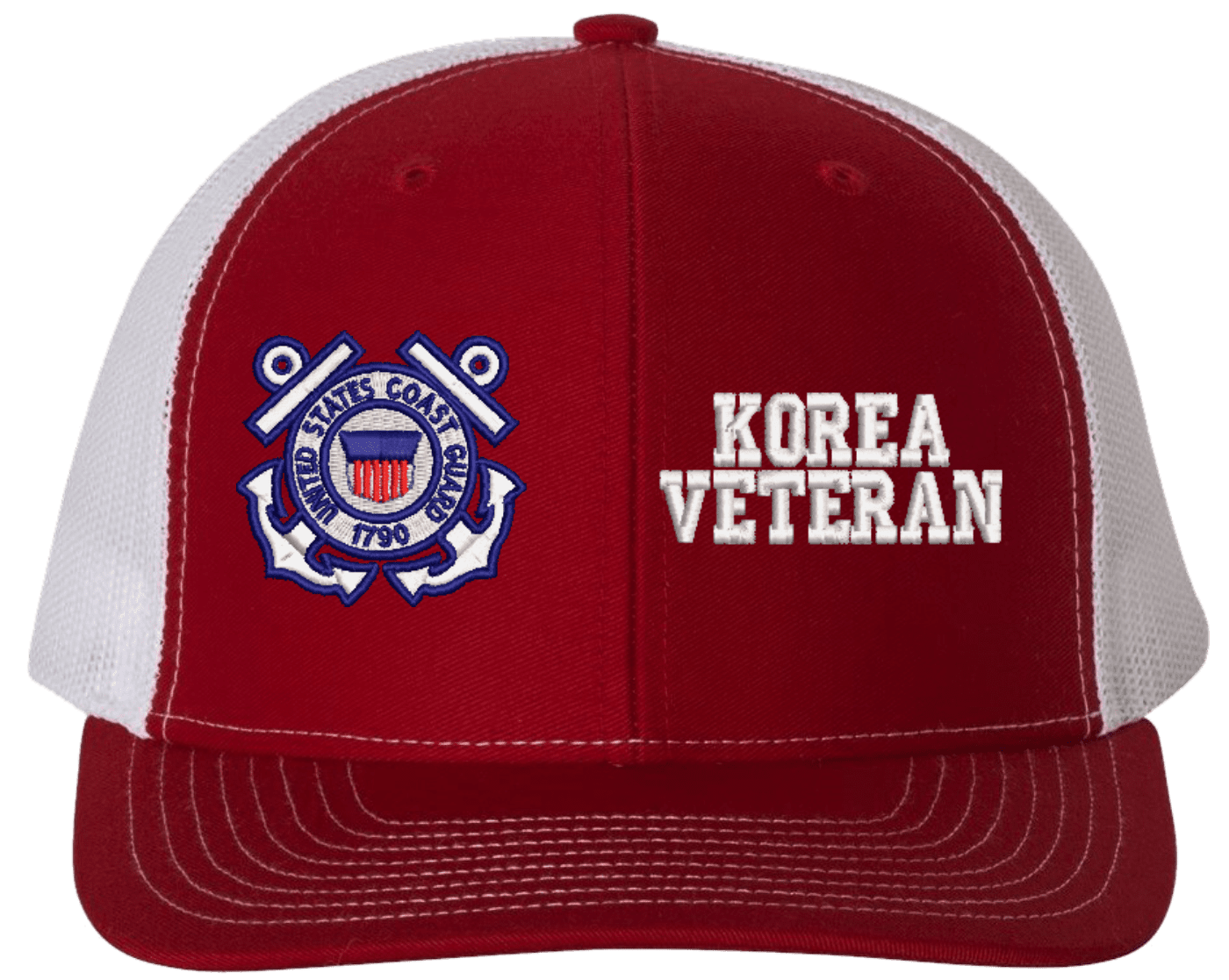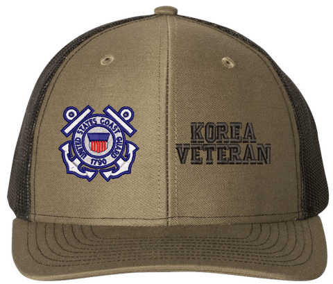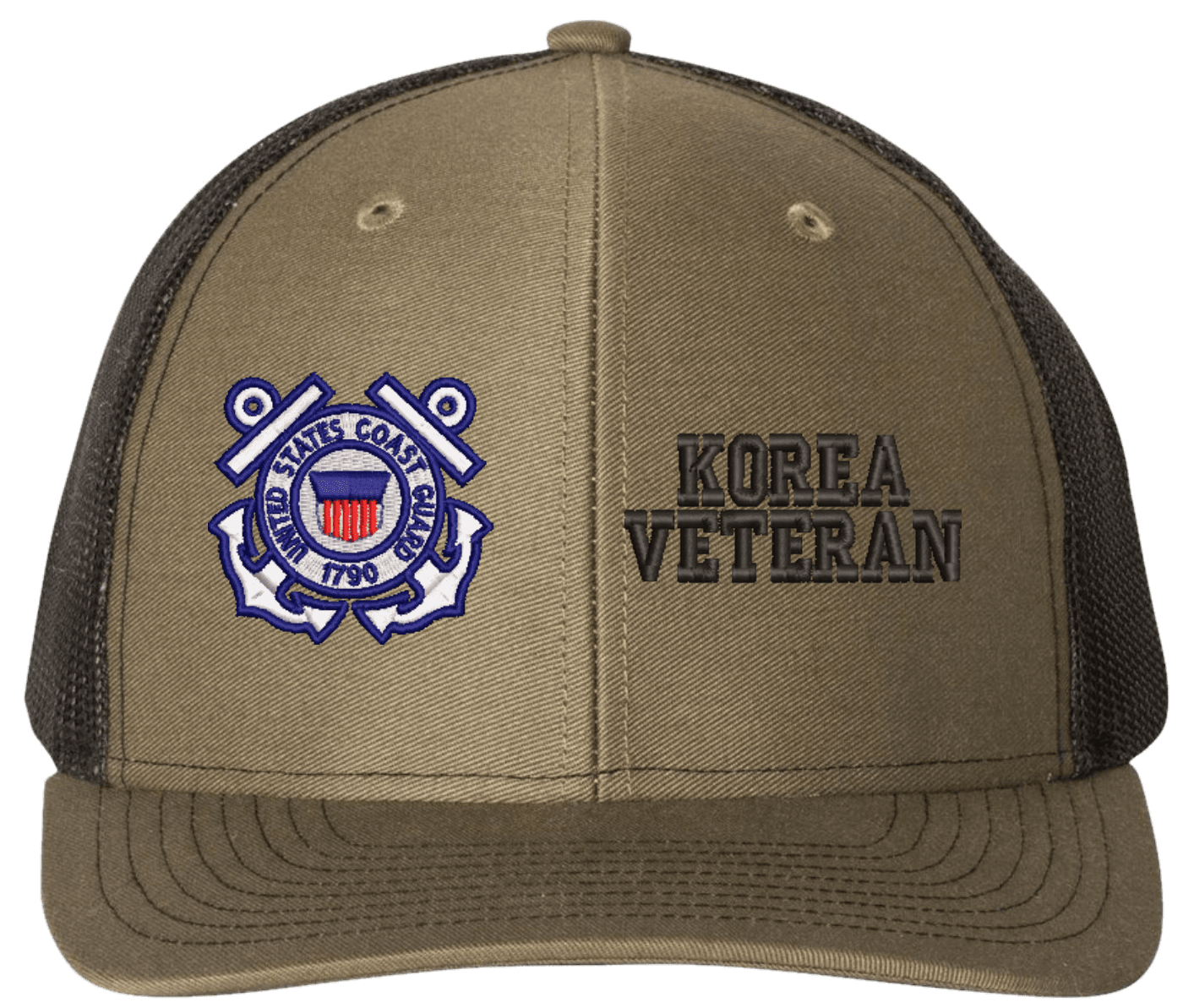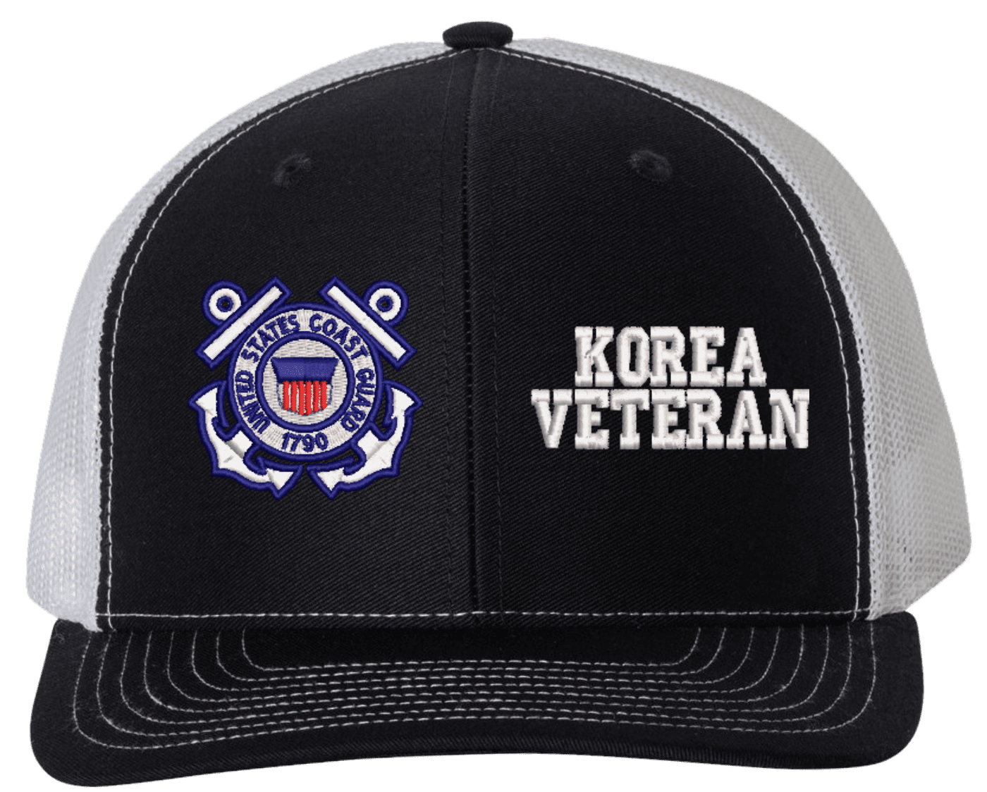 MilitaryBest is proud to offer this U.S. Coast Guard Korea Veteran Mesh Back Cap. The design of this U.S. Coast Guard Cap is crisp, clean, and sure to be loved by people of all ages! Select above from our many cap colors. This U.S. Coast Guard Korea Veteran Mesh Back Cap is crafted by our skilled embroidery technicians at our facilities in Scottsboro, AL. As with all MilitaryBest items, your satisfaction is guaranteed!Caps ordered with custom embroidered personalized back text require an additional 2 to 3 days production time. All custom back text will be embroidered in ALL CAPITAL LETTERS. Caps personalized with back text are non-returnable unless there is a material defect in the cap.