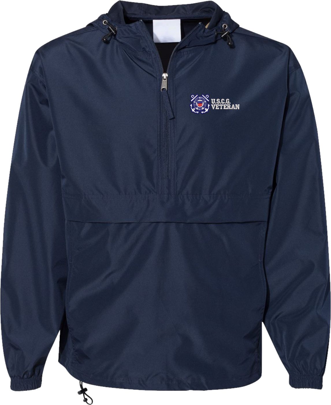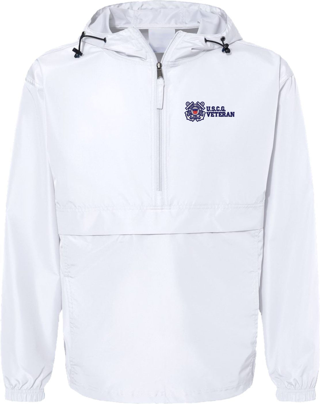 MilitaryBest is proud to offer this quality U.S.C.G. Veteran Hooded Windbreaker. Also known as an Anorak Jacket, this windbreaker is designed to keep wind and water out. With a design embroidered over the left chest, this windbreaker is embroidered to order at our facilities in Scottsboro, AL.. This windbreaker can be packed into the mesh lined pouch pocket for a more portable method of storage.- 100% Polyester