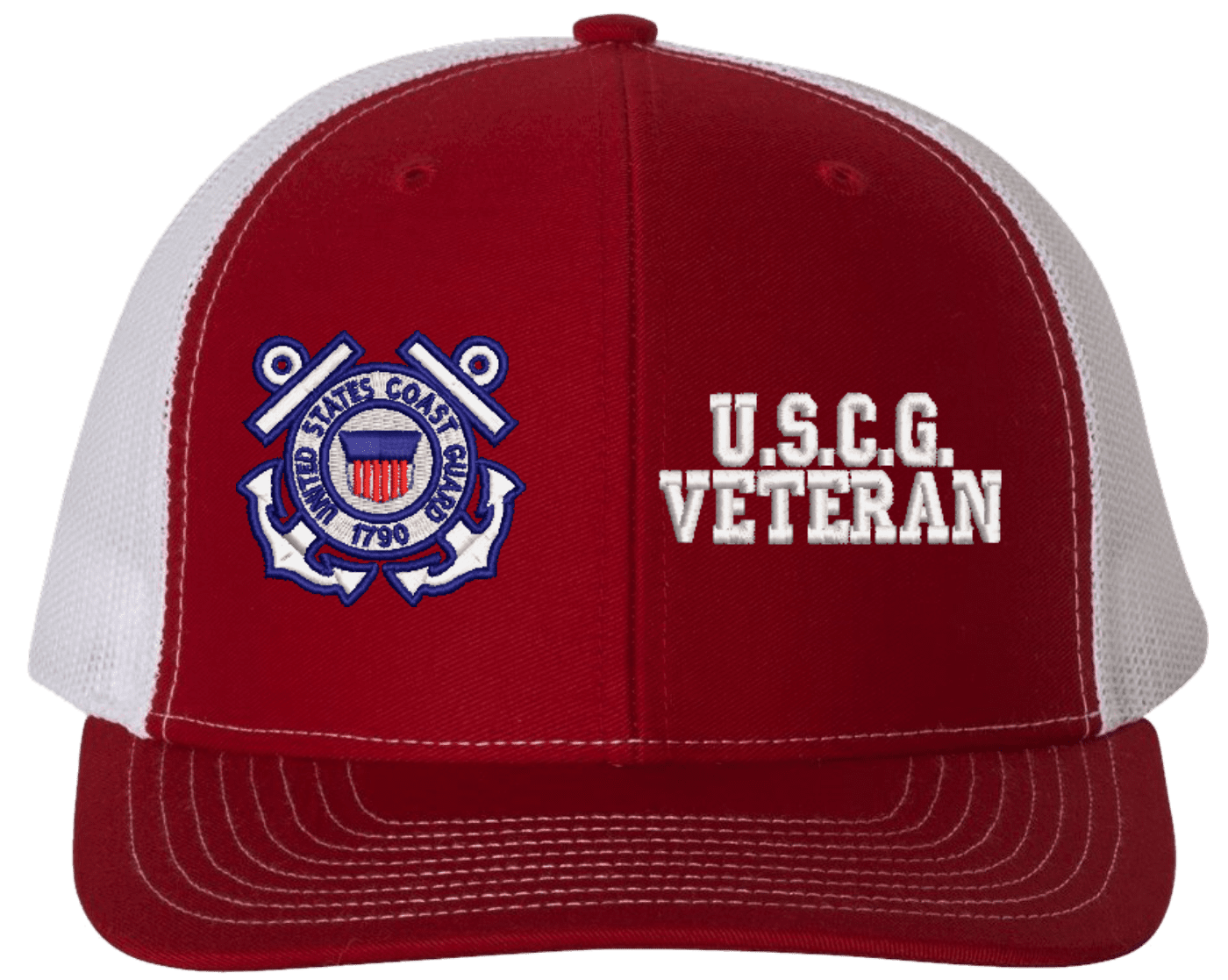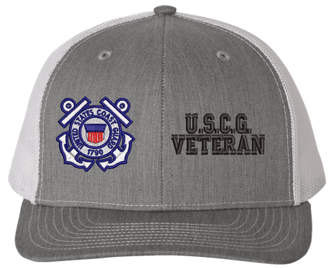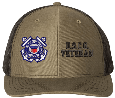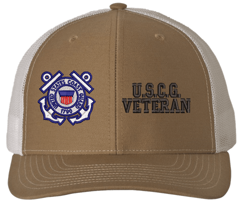 MilitaryBest is proud to offer this U.S.C.G. Veteran Mesh Back Cap. The design of this U.S. Coast Guard Cap is crisp, clean, and sure to be loved by people of all ages! Select above from our many cap colors. This U.S.C.G. Veteran Mesh Back Cap is crafted by our skilled embroidery technicians at our facilities in Scottsboro, AL. As with all MilitaryBest items, your satisfaction is guaranteed!Caps ordered with custom embroidered personalized back text require an additional 2 to 3 days production time. All custom back text will be embroidered in ALL CAPITAL LETTERS. Caps personalized with back text are non-returnable unless there is a material defect in the cap.