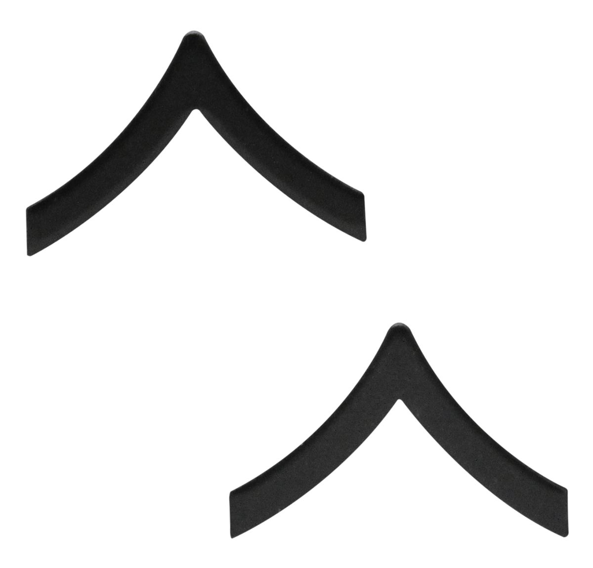This pair of Black Metal U.S.M.C PFC rank insignia is produced by the same company that supplies the exchanges and posts around the globe. This Black Metal Insignia is Solid Brass and It's quality is guaranteed.