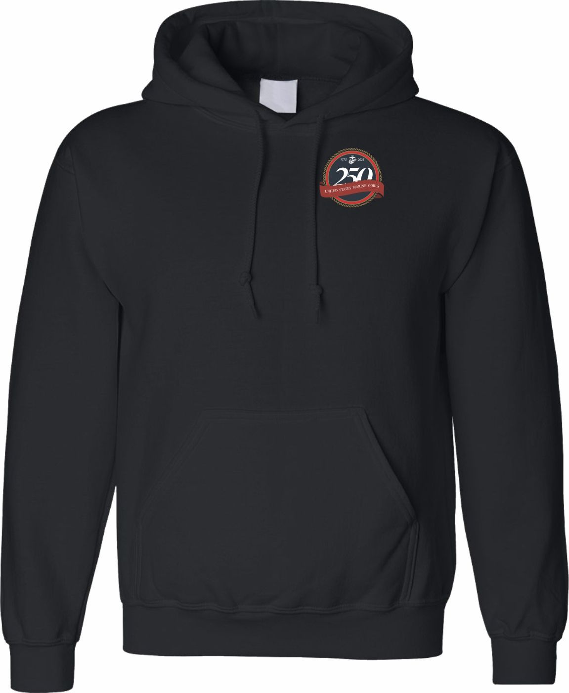 MilitaryBest is proud to offer this fine U.S. Marine Corps 250th Anniversary Seal Printed Hoodie. The design is printed directly on the shirt selected. This shirt is available with several options for the image on the front of the shirt, such as a smaller design in the top left or a full size design across the entire chest. Each shirt is proudly printed in the USA.Unless there is a defect in workmanship or material, these shirts are unreturnable.