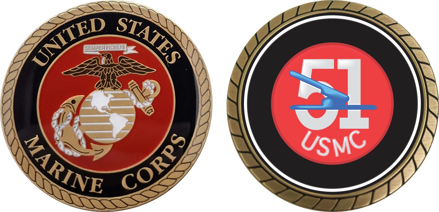 This 1 3/4” U.S.M.C. 51st Defense Battalion Challenge Coin is proudly offered by Militarybest. This Officially Licensed Marine Corps coin has beautiful enamel finish on one side and an organized crisp clean design on the opposite side.