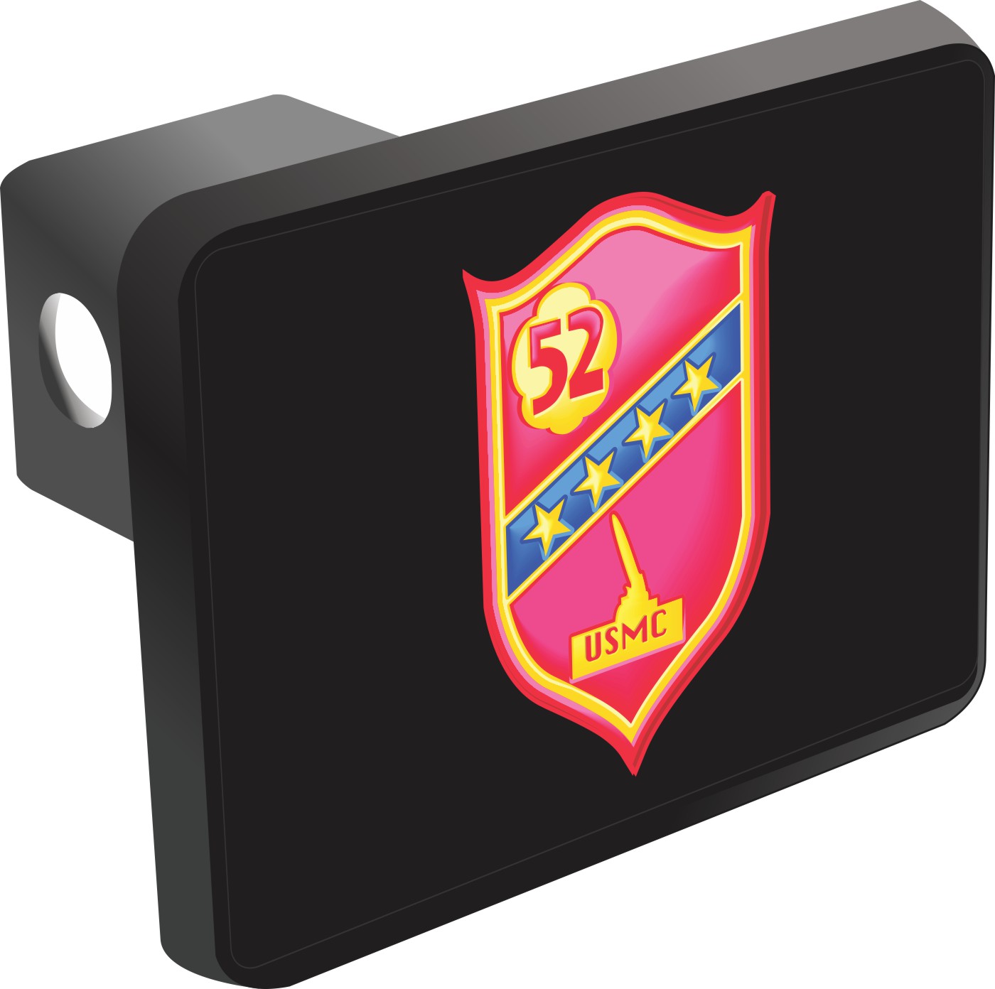 This U.S.M.C. 52nd Defense Battalion Hitch Cover is proudly Made in the USA. Each Hitch Cover's face plate measures 4.7" x 3.4" and is applied on a black heavy duty injection molded plastic 2" hitch cover; link pin not included. The face plate of the hitch cover is sublimation printed to provide a beautiful glossy finish sure to catch the eye. This hitch cover would make a wonderful addition to your truck or other vehicle.A percentage of the sale of each MilitaryBest item is forwarded to the licensing departments of each respective branch of service in support of the MWR (Morale, Welfare, & Recreation) program. These payments are made by either ALL4U LLC or the wholesaler from where the item originated. Our team thanks you for your service and your support of these programs.