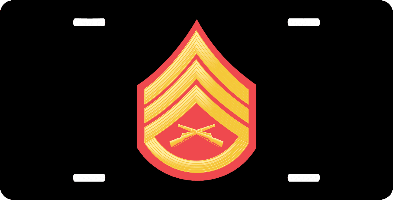 This USMC E-6 Staff Sergeant Red Gold Chevron License Plate is made from heavy gauge aluminum and has a baked enamel finish to last for many years of use. Each plate measures 5 15/16" x 11 15/16". This license plate would make a wonderful addition to your collection or a great gift.
