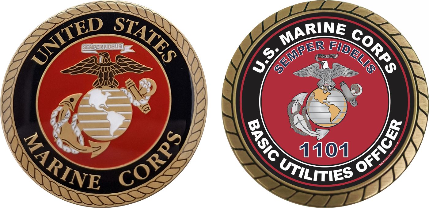 This U.S.M.C. MOS 1101 Basic Utilities Officer Challenge Coin is proudly offered by MilitaryBest. This Officially Licensed Marine Corps coin has beautiful enamel finish on one side and an organized crisp clean U.S.M.C. MOS 1101 Basic Utilities Officer design on the opposite side.