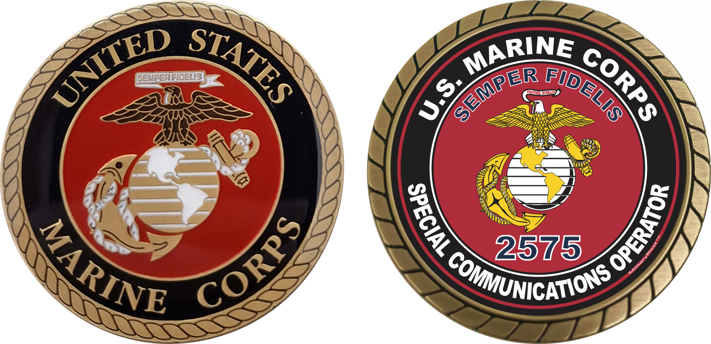 This U.S.M.C. MOS 2575 Special Communications Operator Challenge Coin is proudly offered by MilitaryBest. This Officially Licensed Marine Corps coin has beautiful enamel finish on one side and an organized crisp clean U.S.M.C. MOS 2575 Special Communications Operator design on the opposite side.