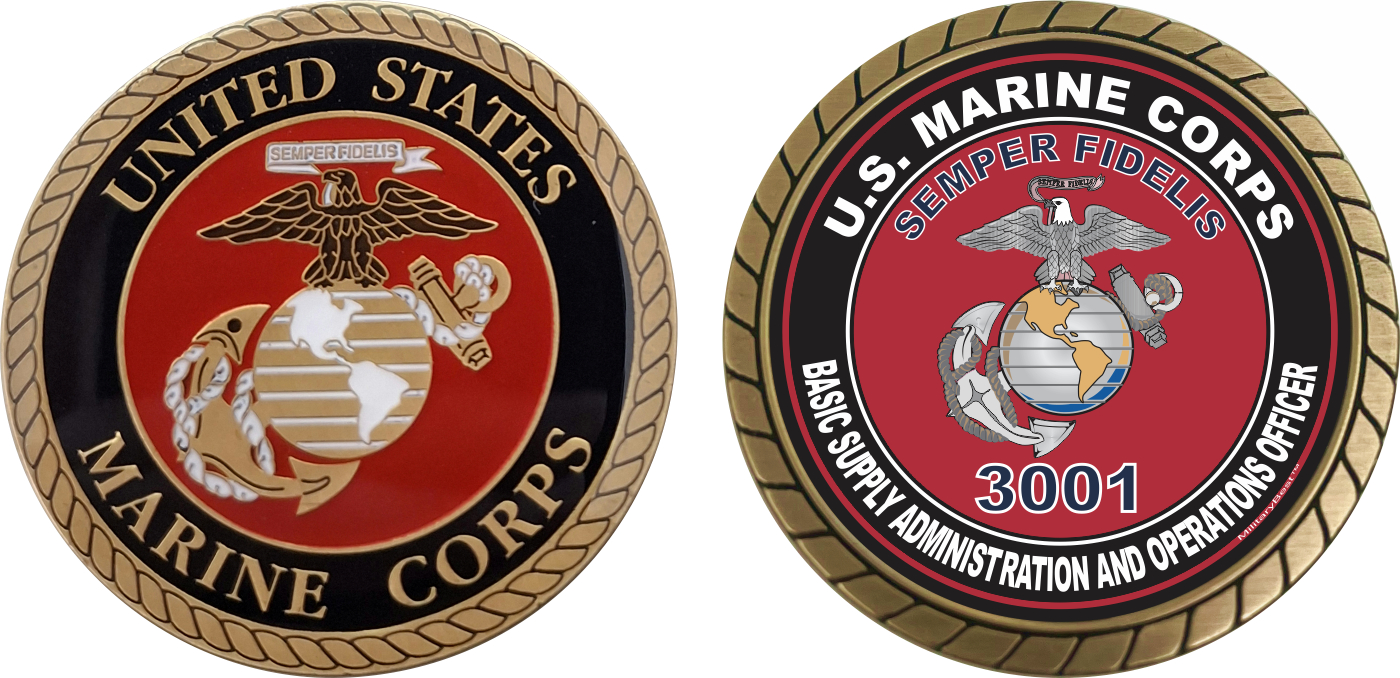 This U.S.M.C. MOS 3001 Basic Supply Administration and Operations Officer Challenge Coin is proudly offered by MilitaryBest. This Officially Licensed Marine Corps coin has beautiful enamel finish on one side and an organized crisp clean U.S.M.C. MOS 3001 Basic Supply Administration and Operations Officer design on the opposite side.