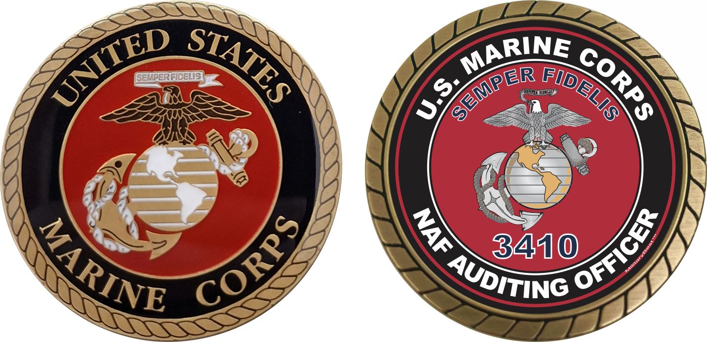This U.S.M.C. MOS 3410 NAF Auditing Officer Challenge Coin is proudly offered by MilitaryBest. This Officially Licensed Marine Corps coin has beautiful enamel finish on one side and an organized crisp clean U.S.M.C. MOS 3410 NAF Auditing Officer design on the opposite side.