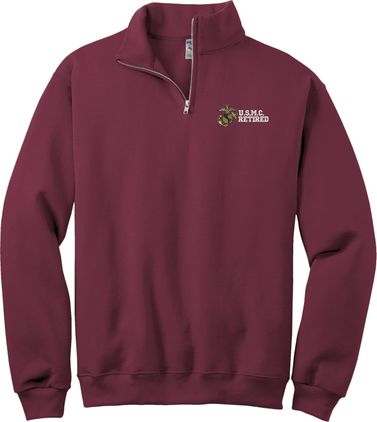 MilitaryBest is proud to offer this U.S.M.C. Retired Embroidered Quarter-Zip Pullover. This quality shirt is embroidered by our MilitaryBest team in Northeast Alabama.PRODUCT FEATURES