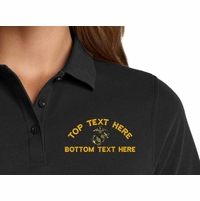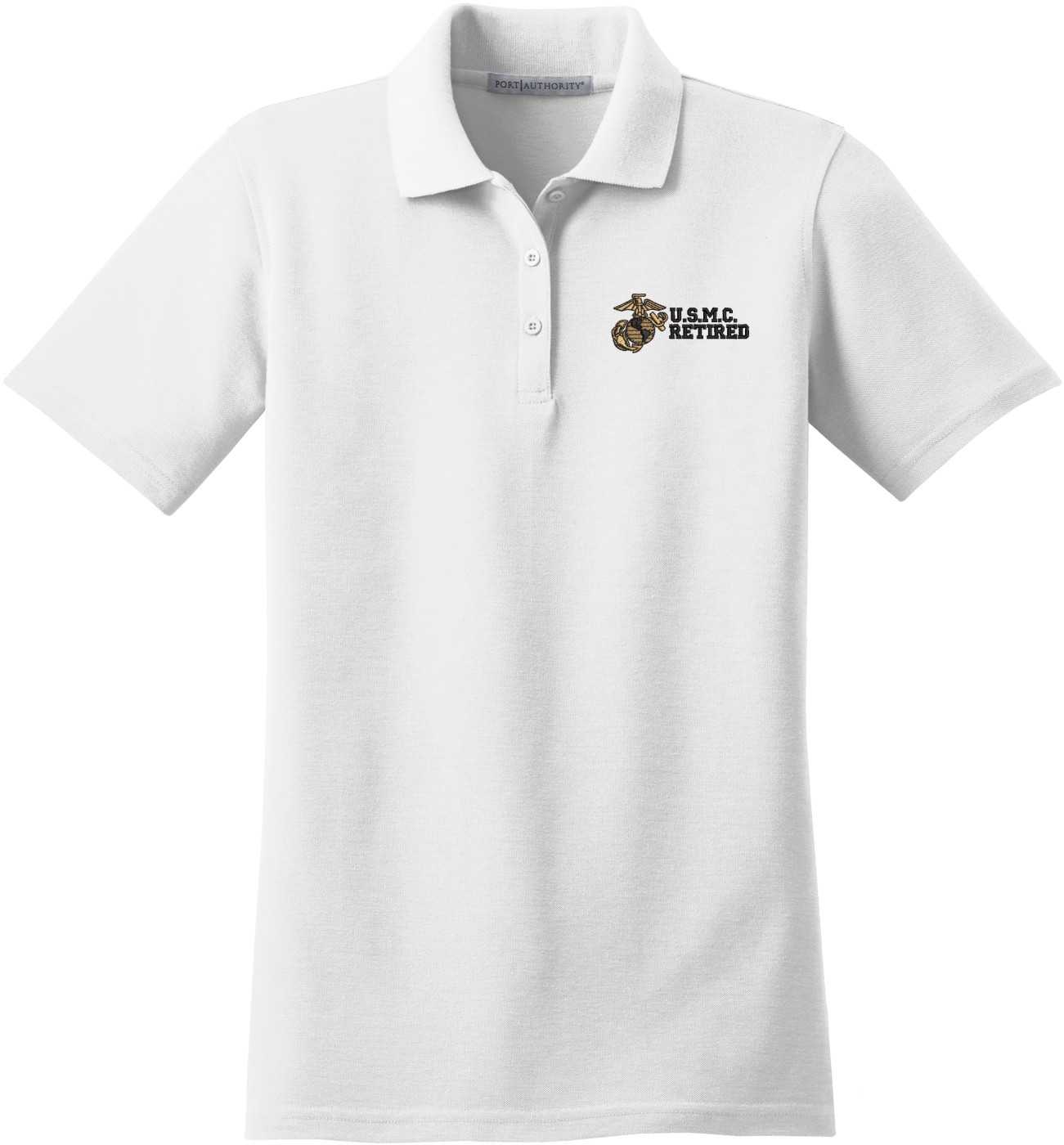 MilitaryBest is proud to offer this U.S.M.C. Retired Women's Stain-Release Polo. This polo is embroidered by our MilitaryBest team in Northeast Alabama. These polos are made with a stain-release finish for long-lasting wear, odor-fighting properties, and superior wrinkle and shrink resistance.Care Instructions: Machine Wash Cold With Like Colors. Do Not Use Fabric Softener. Do Not Bleach. Tumble Dry Low. Warm Iron If Necessary.