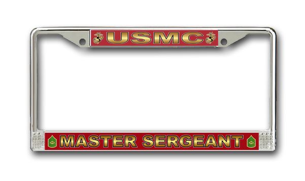 U.S.M.C. 'Master Sergeant' License Plate FrameThis Marine Corps 'Master Sergeant' License Plate Frame is made from the highest quality chrome finished metal alloy. Each one is designed to provide years of use. Each is designed in our facility in Scottsboro, Alabama.
