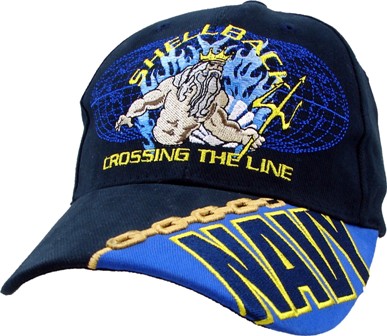 CLICK ON THE CAP TO ENLARGE THE IMAGE.This U.S. Navy Shellback "Crossing the Line" Low Profile Ball Cap is directly embroidered onto a cotton twill cap with a sandwich trim. Fully adjustable embroidered strap. All of our Military hats are fully guaranteed. This Shellback cap would make a wonderful addition to your collection or a great gift!
