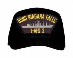 This USNS Niagara Falls T-AFS 3 Ship Cap is an emblematic, poly, dark under the visor cap. Each has an adjustable strap, and is available as a 5 panel high profile or 6 panel low profile cap. All MilitaryBest caps are fully guaranteed. Some people call them Military Covers or Military Hats. This Military Cap is proudly Made in The U.S.A.For caps ordered with custom embroidered personalized text please allow an additional 3 to 5 days production time. All custom back text will be embroidered in ALL CAPITAL LETTERS. Caps with back text or eggs are non-returnable unless there is a material defect in the cap. If a style is not selected the cap will be made using a high profile style cap as pictured.