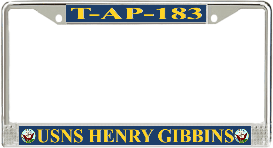 USNS Henry Gibbins T-AP-183 License Plate FrameThis USNS Henry Gibbins T-AP-183 License Plate Frame is proudly made in the USA at our facilities in Scottsboro, Alabama. Each of our MilitaryBest U.S. Navy Frames feature top and bottom Poly Coated Aluminum strips that are printed using sublimation which gives these quality automobile military frames a beautiful high gloss finish.