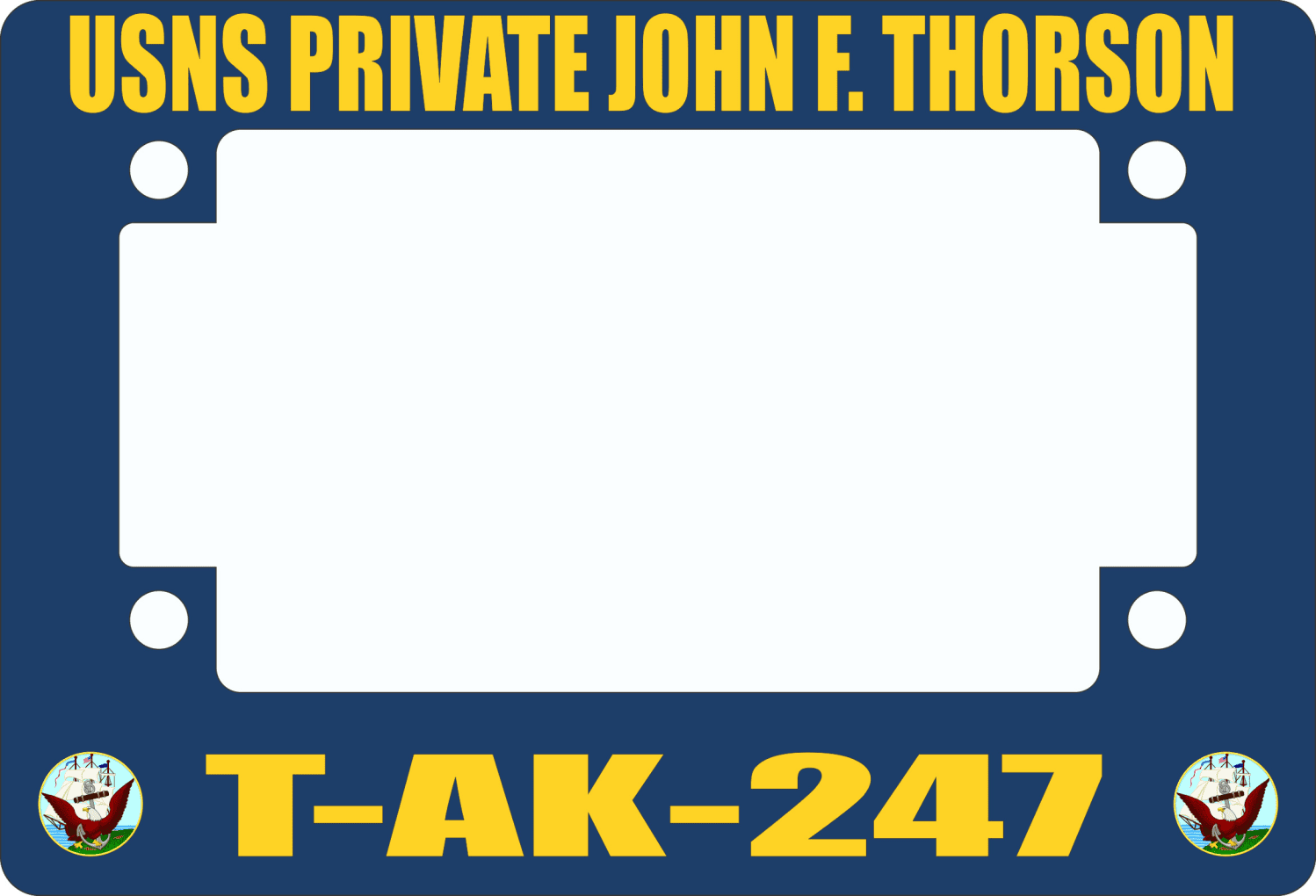 This USNS Private John F. Thorson T-AK-247 Motorcycle Frame is proudly made in the USA at our facilities in Scottsboro, Alabama. Each frame is made with fiberglass reinforced plastic and measures 5-1/16" x 7 7/16. This Motorcycle Frame would make a wonderful addition to your collection or a great gift. Its quality is guaranteed.