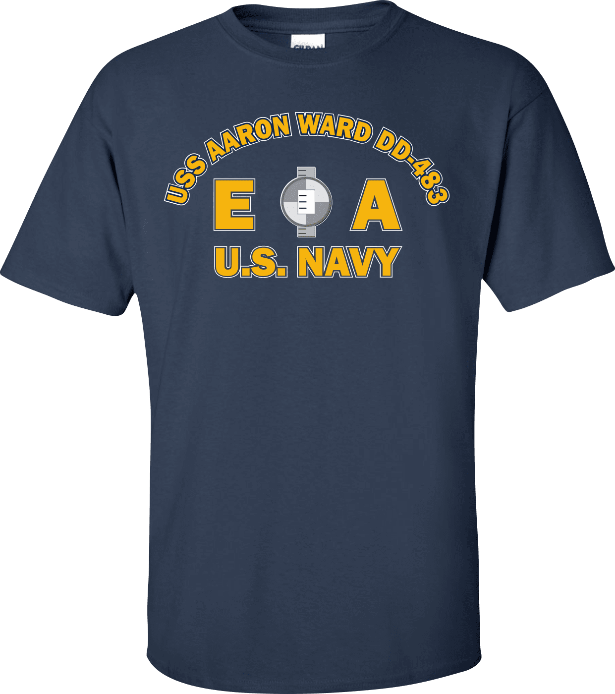 MilitaryBest is proud to offer this USS AARON WARD DD-483 Rate EA Engineering Aide T-Shirt. This shirt is available as a 100% cotton t-shirt or a 100% polyester men’s or women’s moisture wicking t-shirt. Each shirt is proudly printed in the USA.