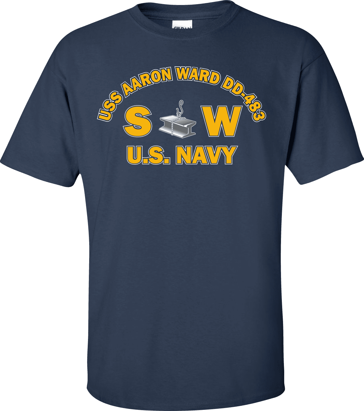 MilitaryBest is proud to offer this USS AARON WARD DD-483 Rate SW Steelworker T-Shirt. This shirt is available as a 100% cotton t-shirt or a 100% polyester men’s or women’s moisture wicking t-shirt. Each shirt is proudly printed in the USA.