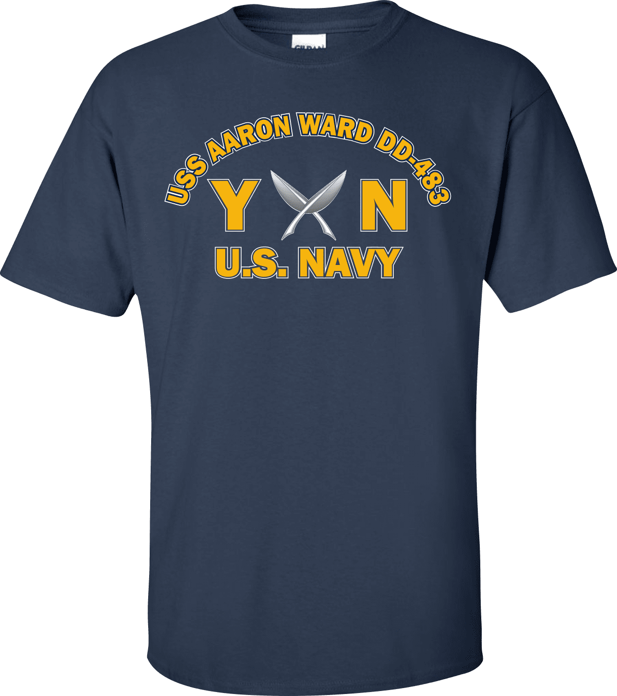 MilitaryBest is proud to offer this USS AARON WARD DD-483 Rate YN Yeoman T-Shirt. This shirt is available as a 100% cotton t-shirt or a 100% polyester men’s or women’s moisture wicking t-shirt. Each shirt is proudly printed in the USA.