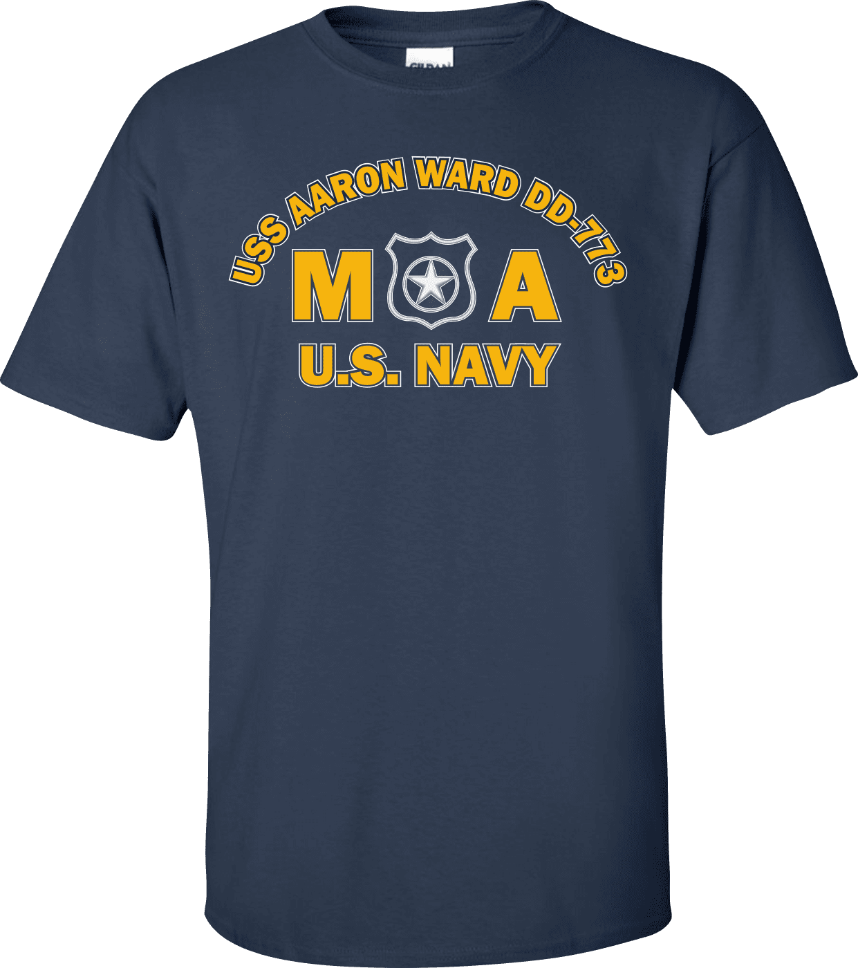 MilitaryBest is proud to offer this USS AARON WARD DD-773 Rate MA Master At Arms T-Shirt. This shirt is available as a 100% cotton t-shirt or a 100% polyester men’s or women’s moisture wicking t-shirt. Each shirt is proudly printed in the USA.